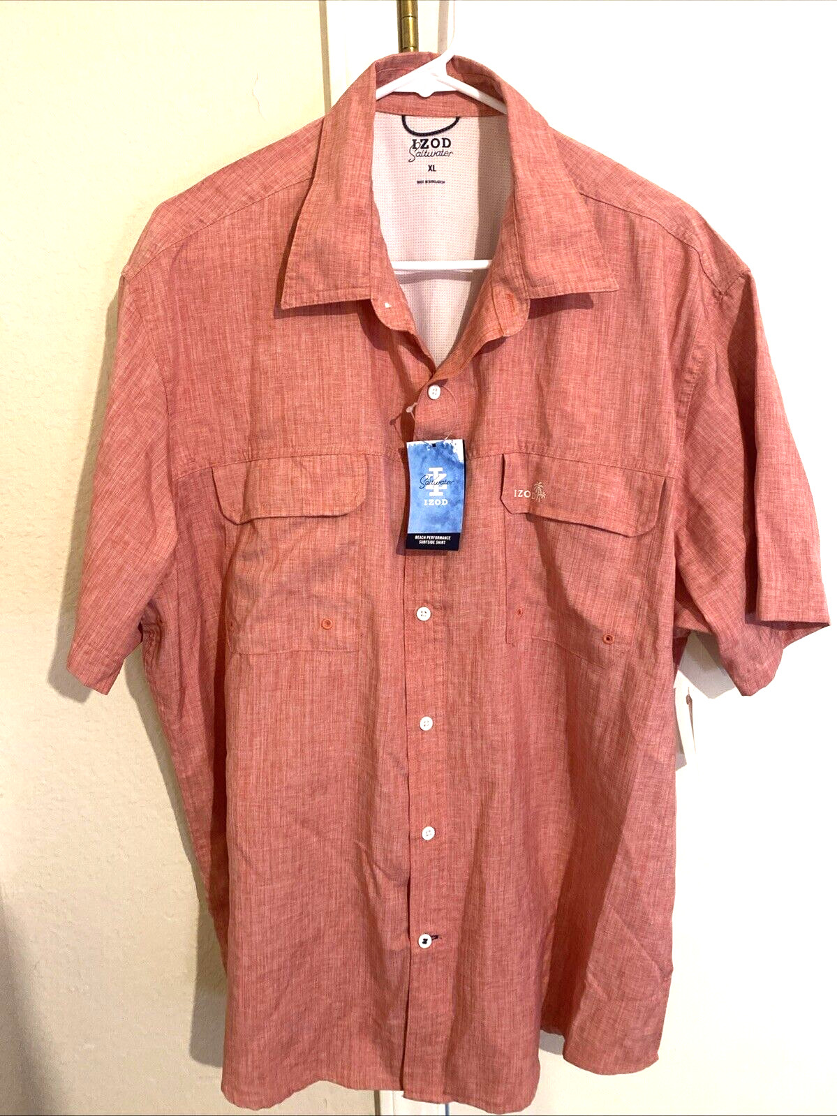 как выглядит Izod Saltwater Performance Rapture Rose Beach Shirt Short Sleeve Casual Mens XL фото