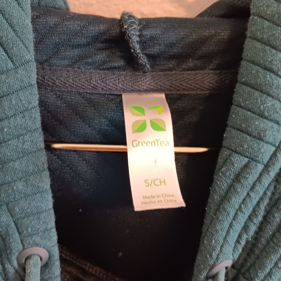 Green Tea Women's Small S Athletic Quilted Hooded Sweatshirt Green