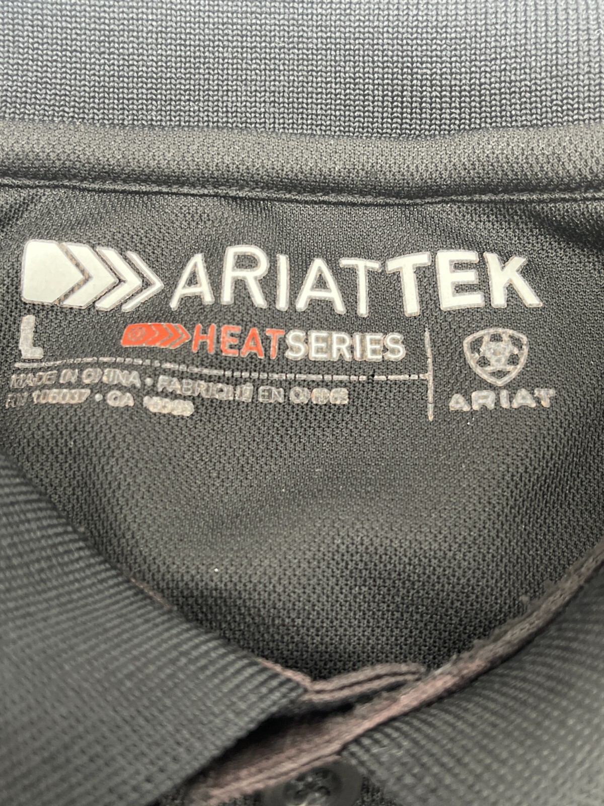 Ariat Tek Heat Series Mens L Black Short Sleeve Performance Polo Shirt Ariattek