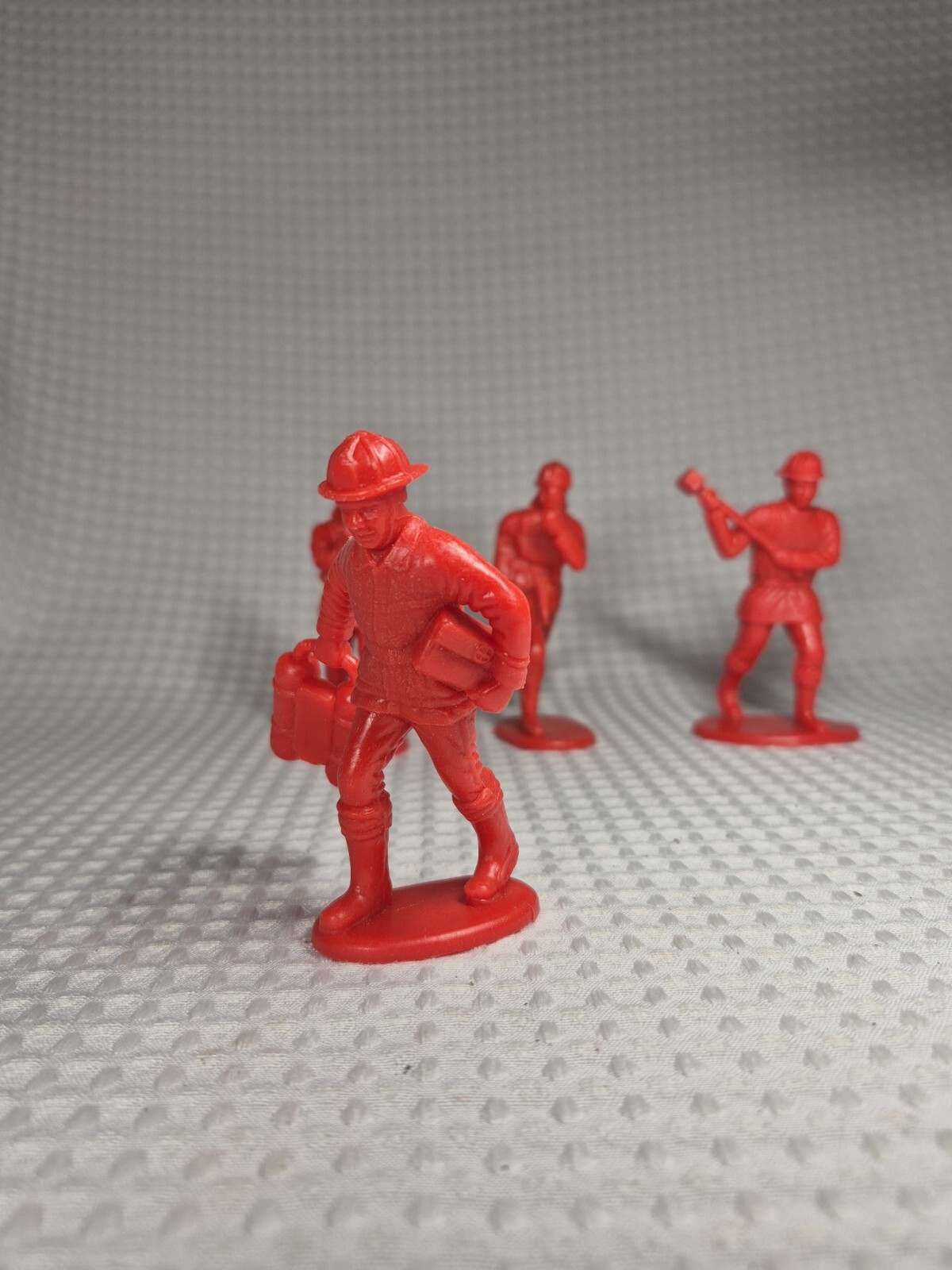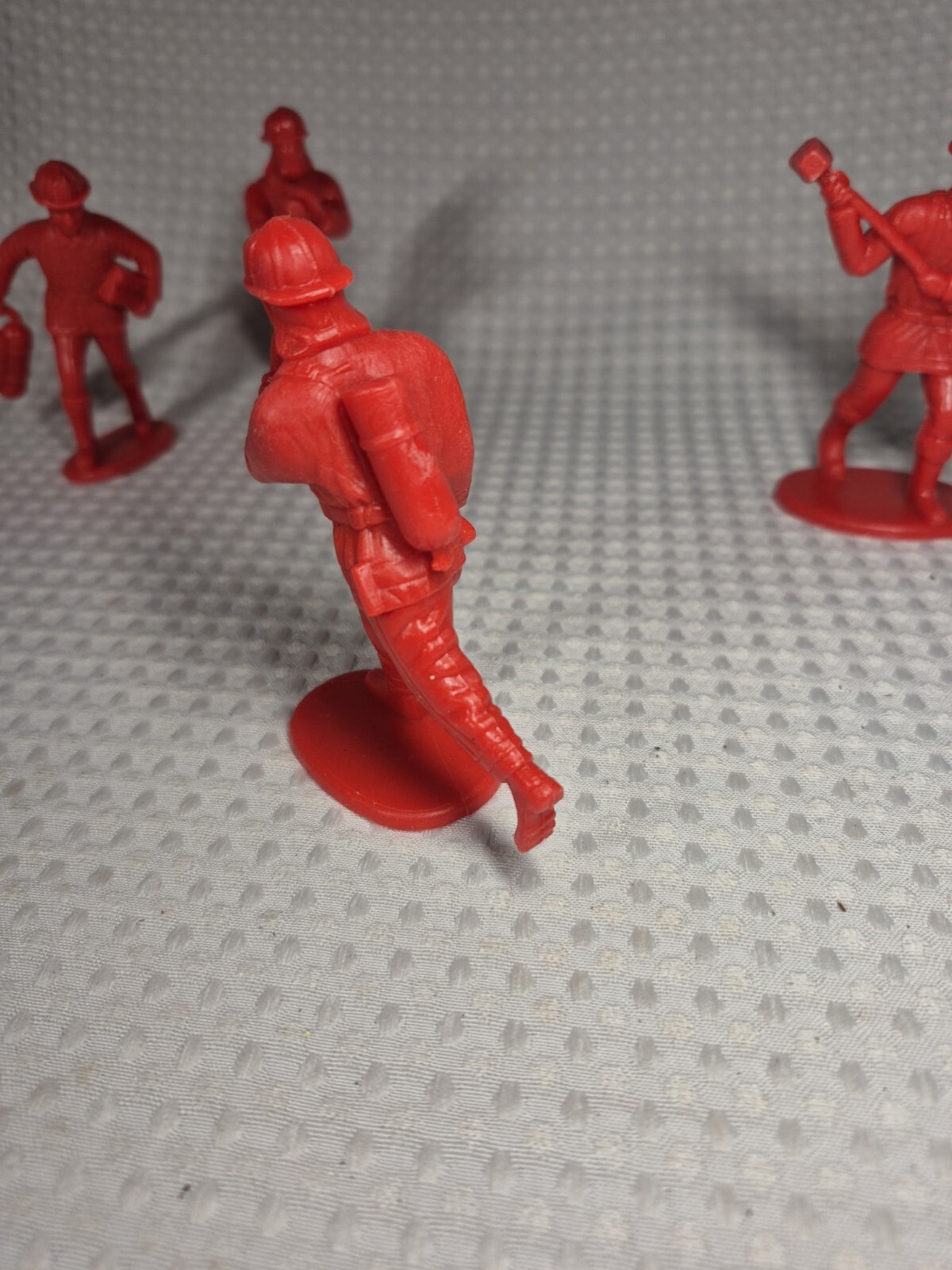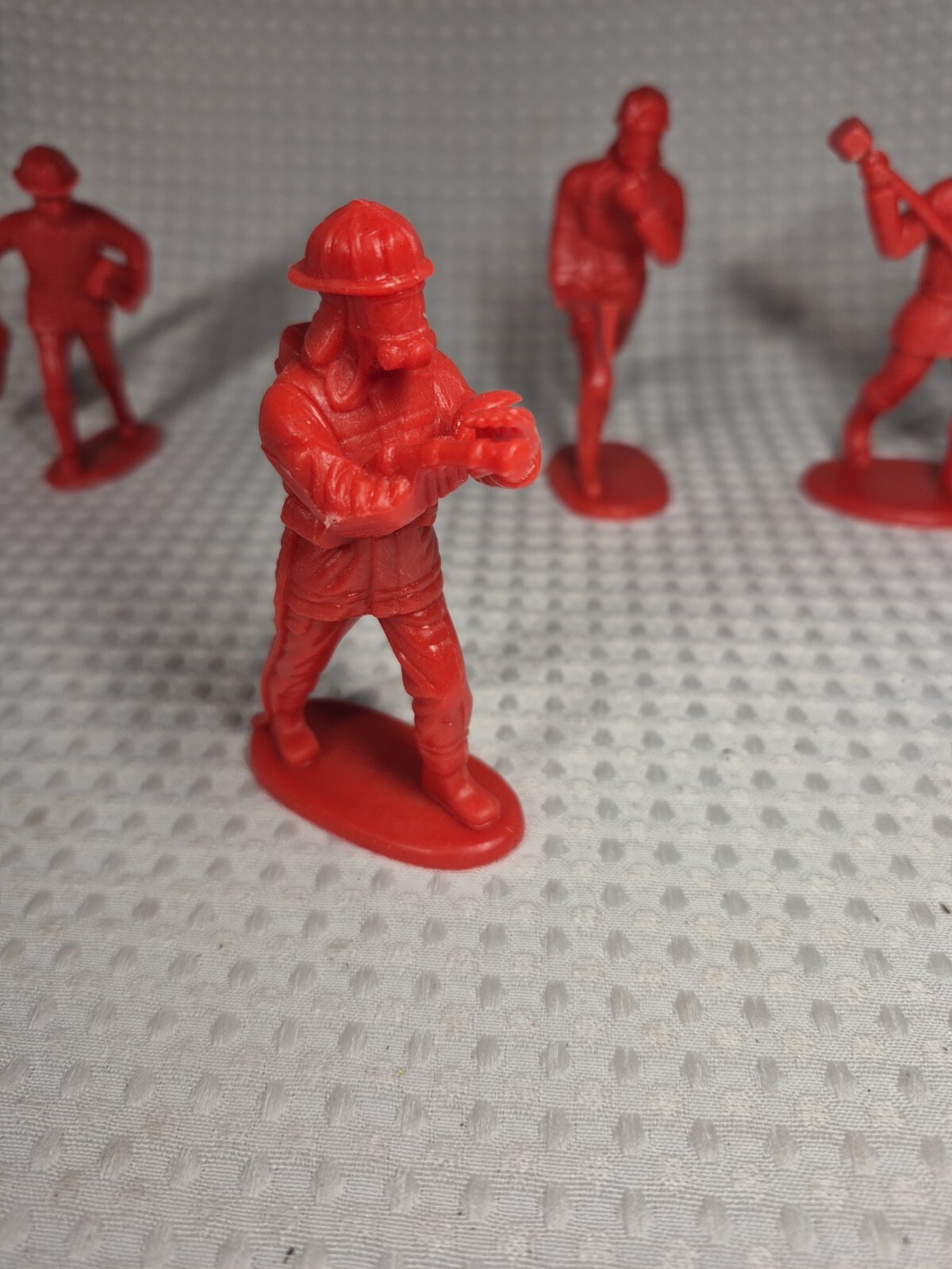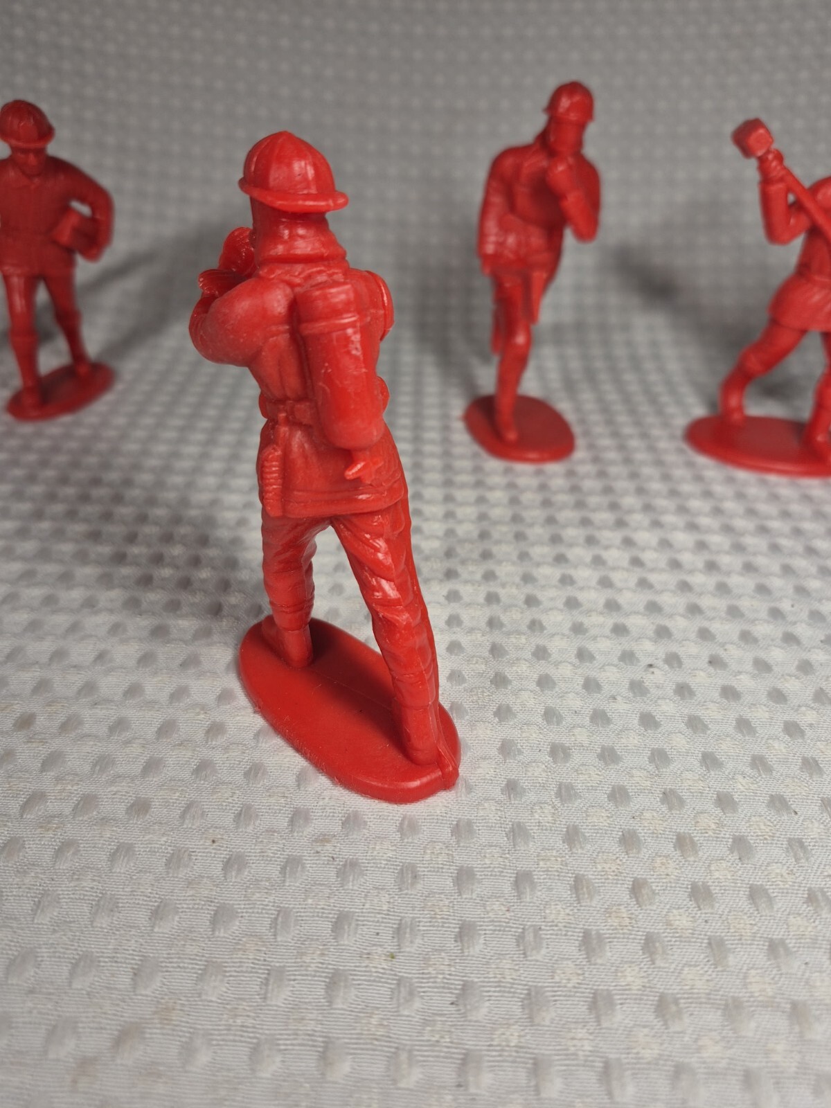 Vintage Red Firefighter 4 Toy Figures Hard Plastic PVC 4 Poses Scarce