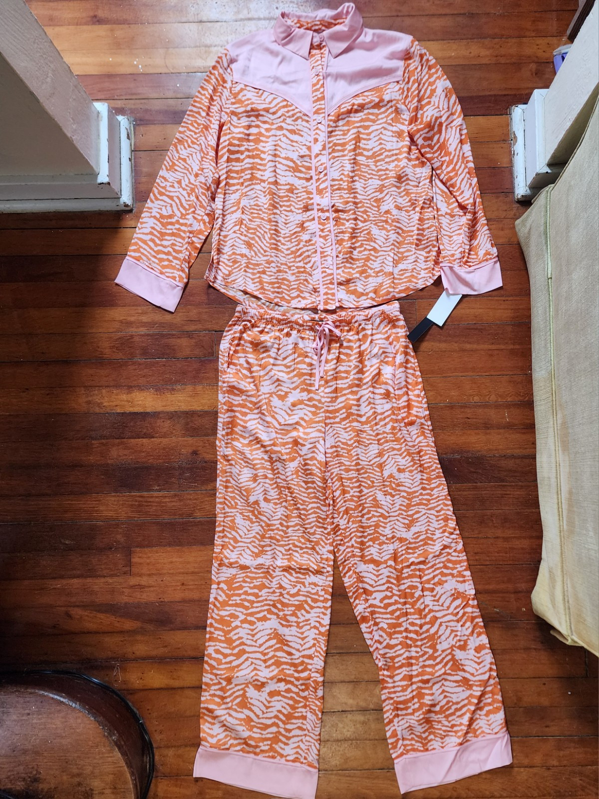 как выглядит Room Service Pjs Womens Zebra Print Long Sleeve Notch Collar Satin Pant Pajama фото