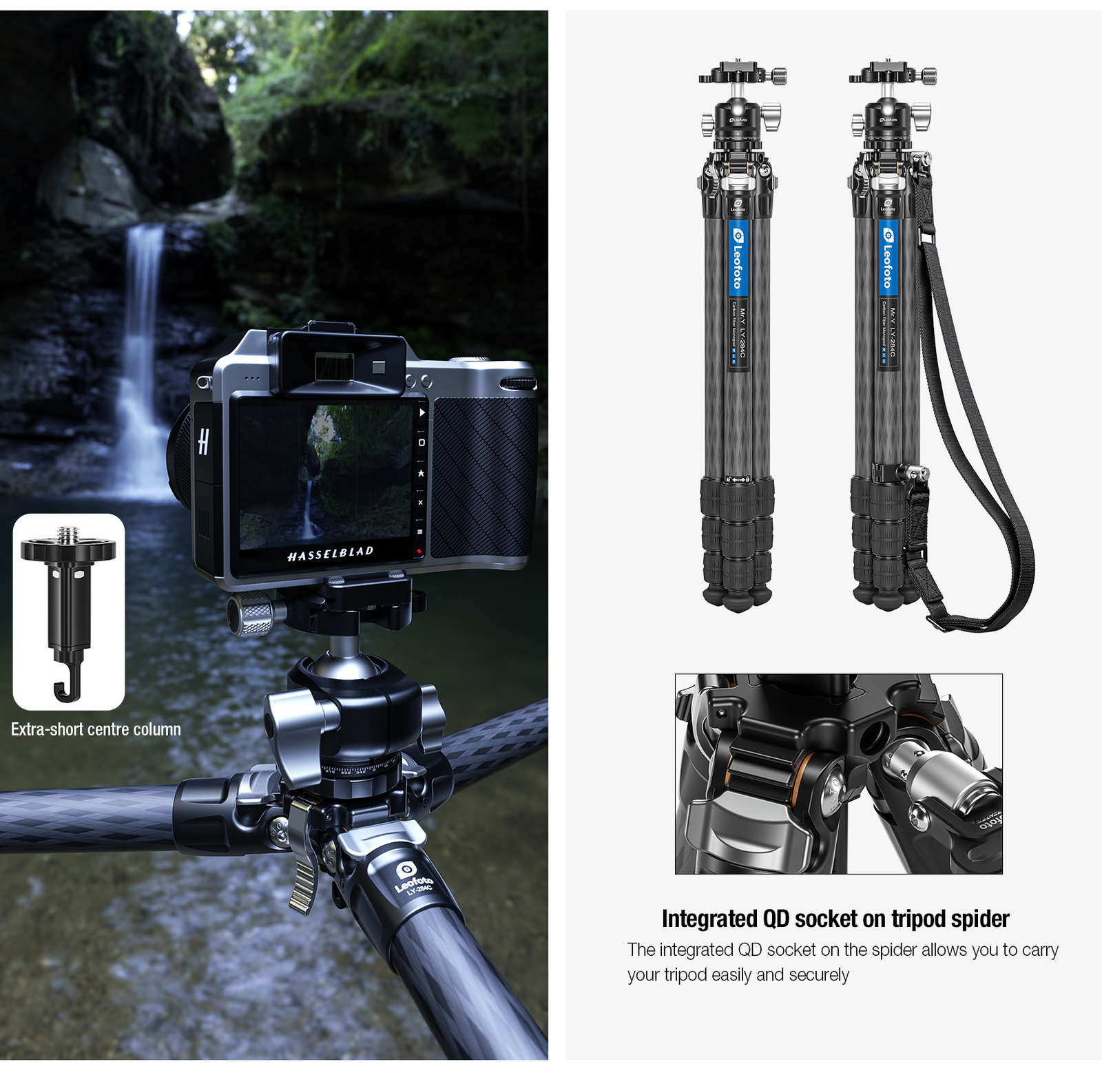 Leofoto LY-284C LH-30R Y Shaped Center Column Carbon Fiber Tripod Kit - Black