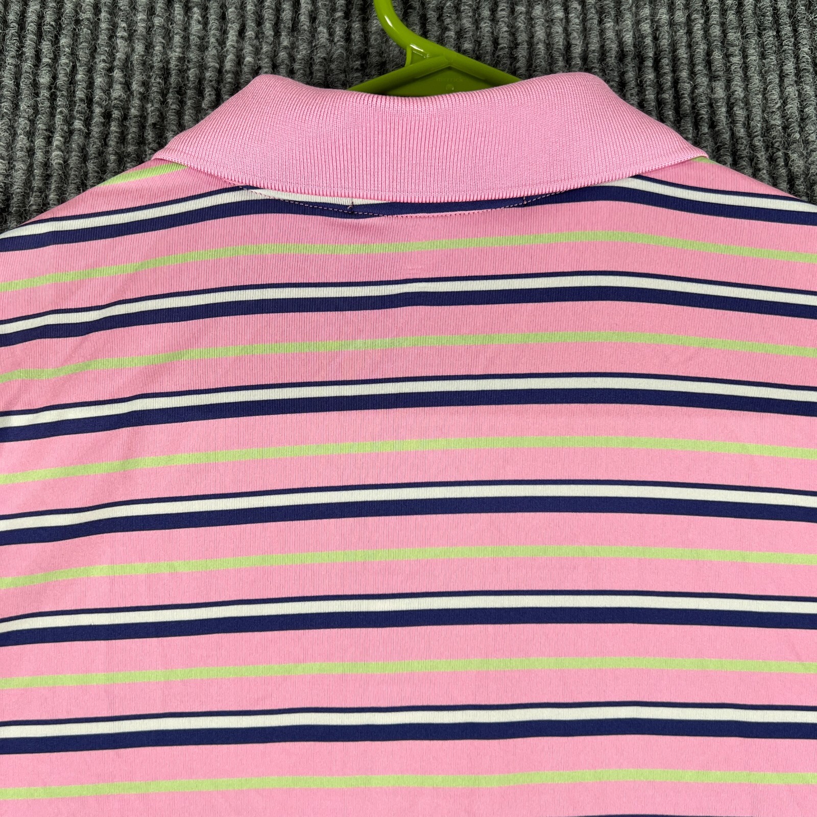 RLX Ralph Lauren Polo Shirt Mens Large Pink Striped Short Sleeve Golf Casual