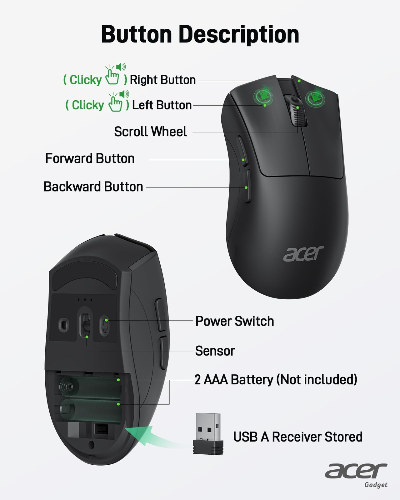 как выглядит acer Wireless Mouse, 1200 DPI Computer Mouse Wireless with 2.4GHz USB A Recei... фото