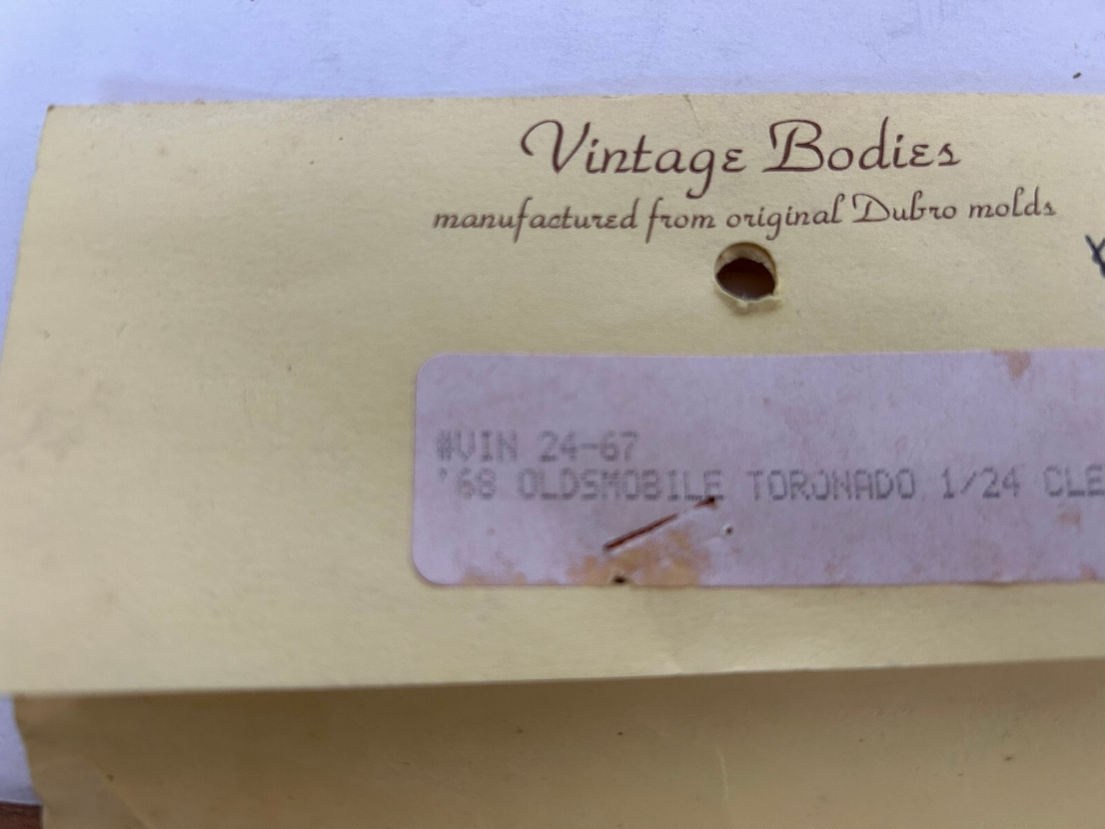 Vintage Bodies '68 Olds Toronado 1/24 scale slot car body NOS