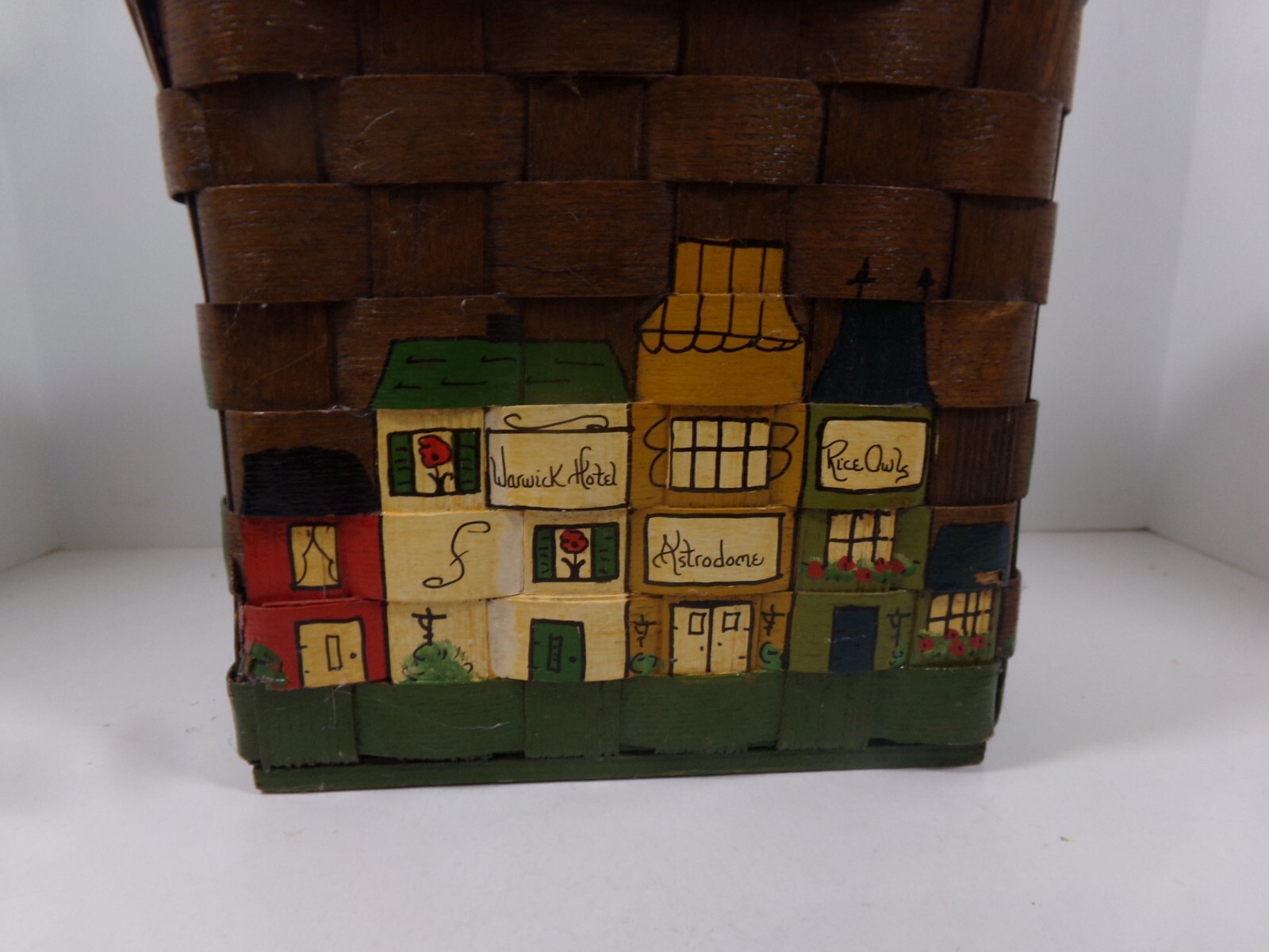 VTG 1970 S CARO NAN HAND PAINTED PENNY WOVEN BASKET BOX PURSE TRAVEL SIGNEDTexas
