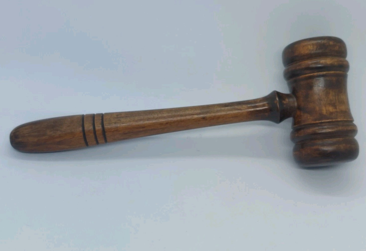 Wooden Gavel 10.75 Judge Legal Auction Hammer Brown Vintage