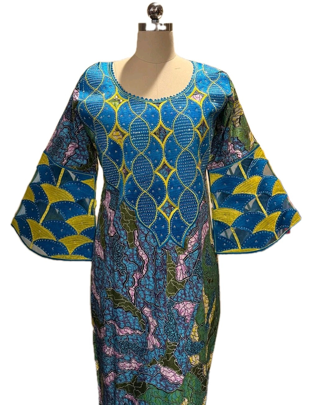 African Maxi Super Dress With Beautiful Beninese Embroidery Size M