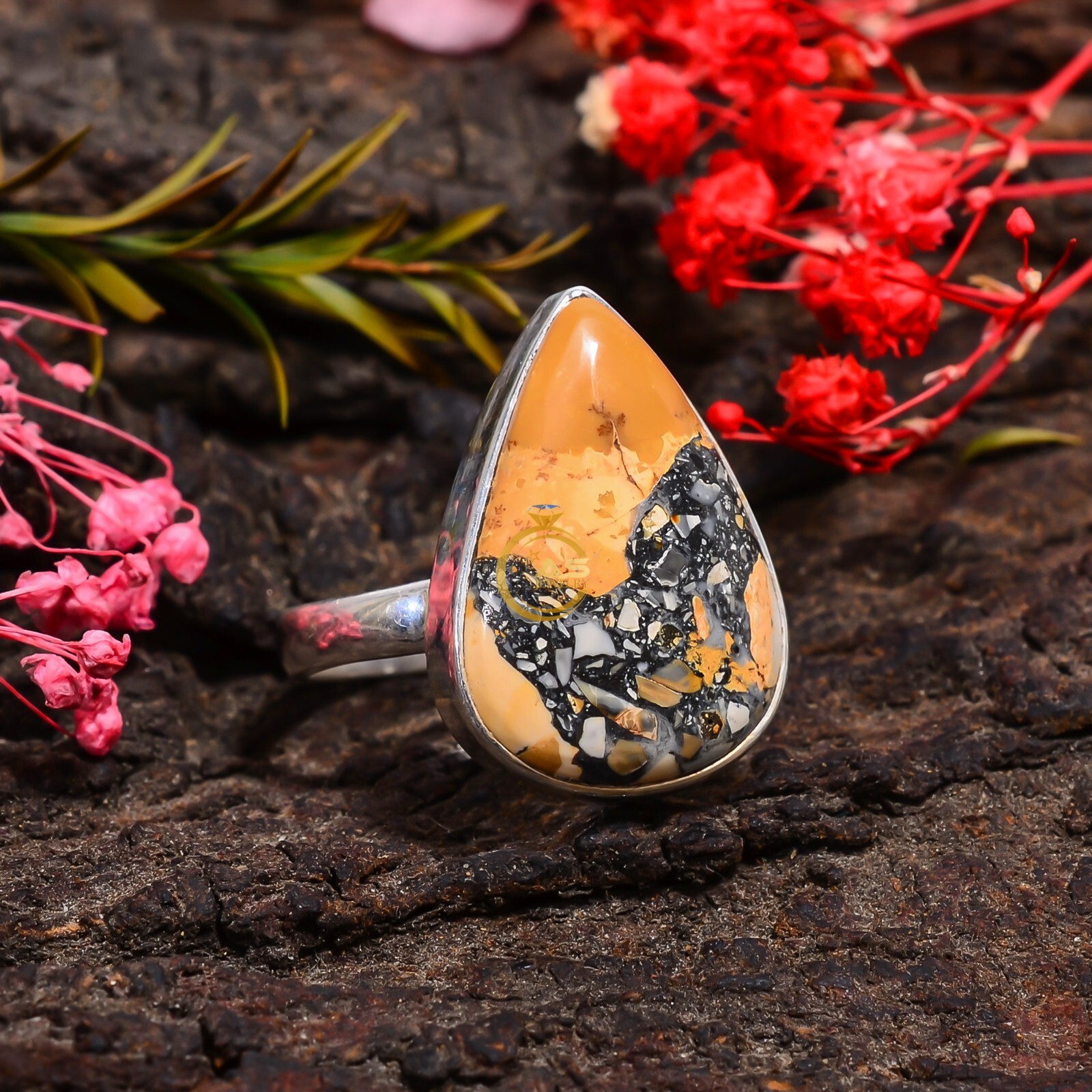 как выглядит Maligano Jasper Ring 925 Sterling Silver Handmade Statement Boho Rings Jewelry фото