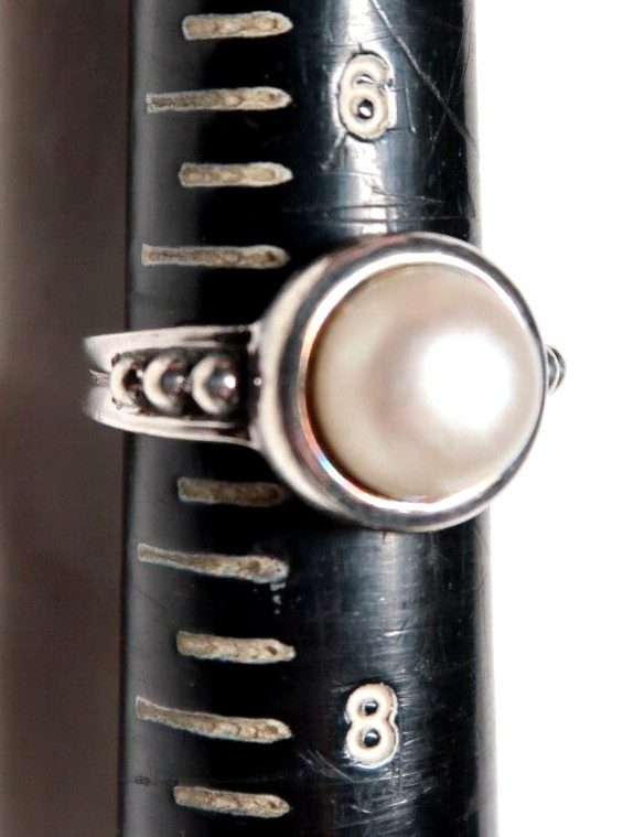 как выглядит VINTAGE CLASSIC STERLING SILVER MOTHER OF PEARL BAND RING SIZE 7 фото
