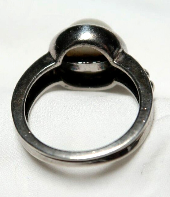 VINTAGE CLASSIC STERLING SILVER MOTHER OF PEARL BAND RING SIZE 7