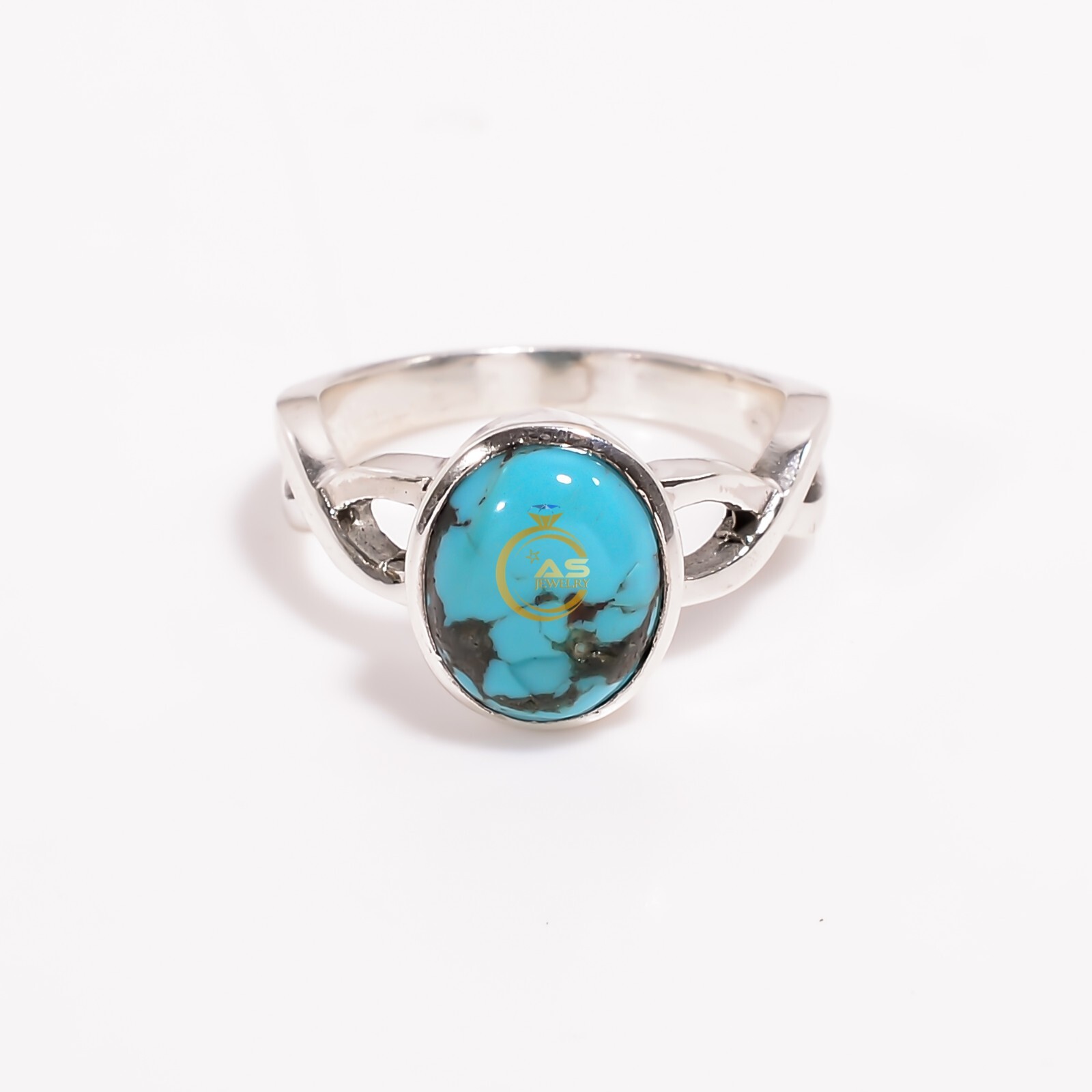 Pyrite Turquoise Ring Blue Stone 925 Sterling Silver Ring Gift Jewelry for Women