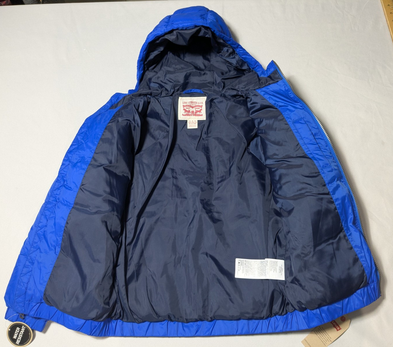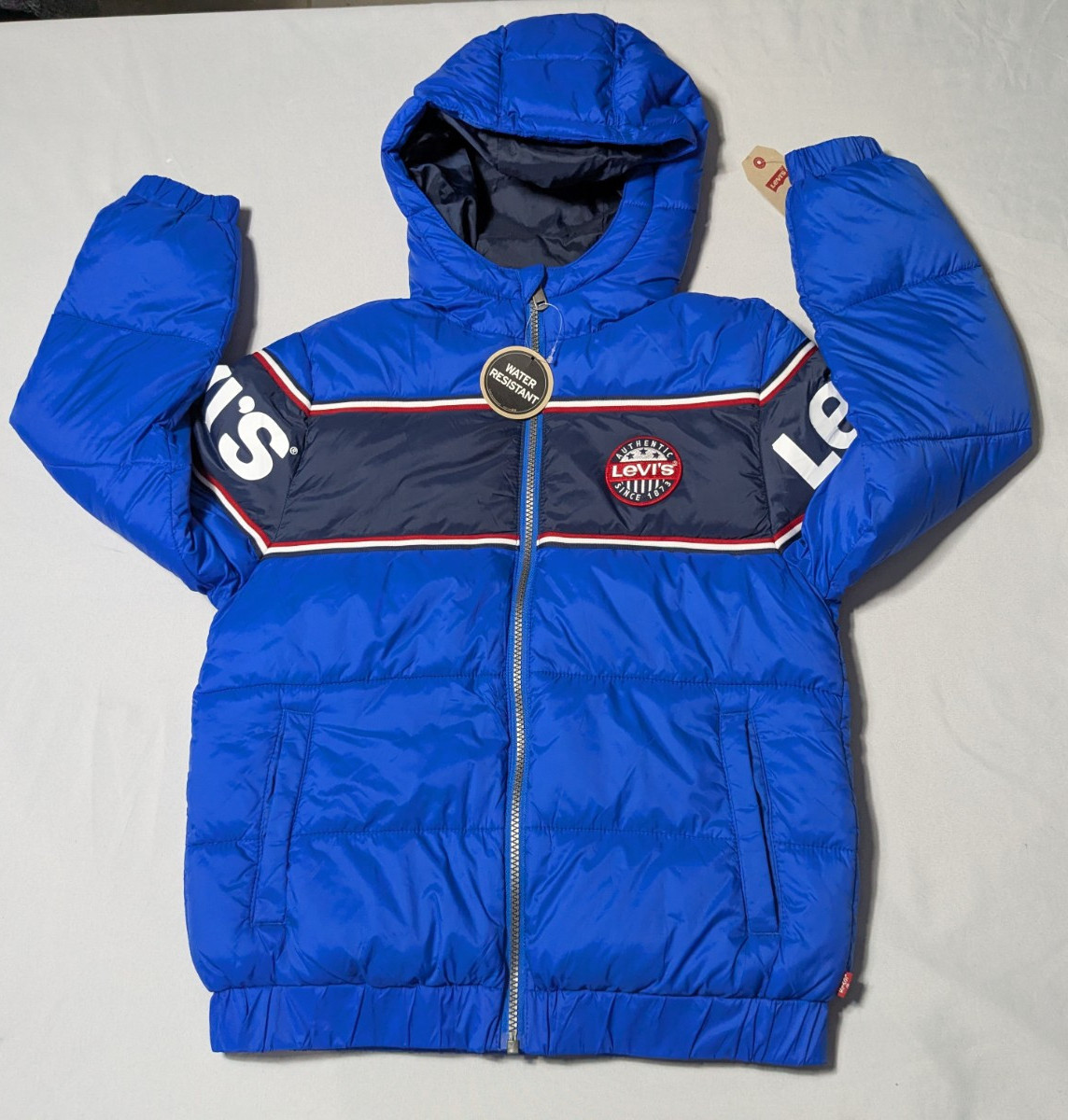 LEVIS Boys Medium 10-12 Yrs Blue Nylon Full Zip Hooded Puffer Jacket NEW