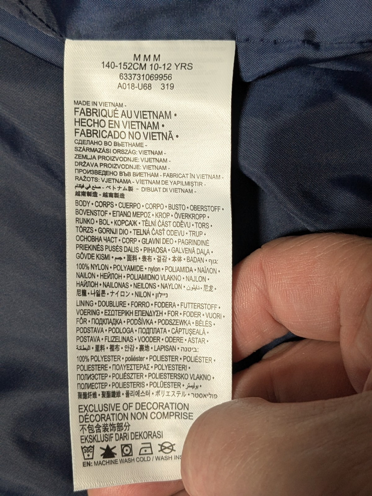 Outer Shell Material: 100% Nylon