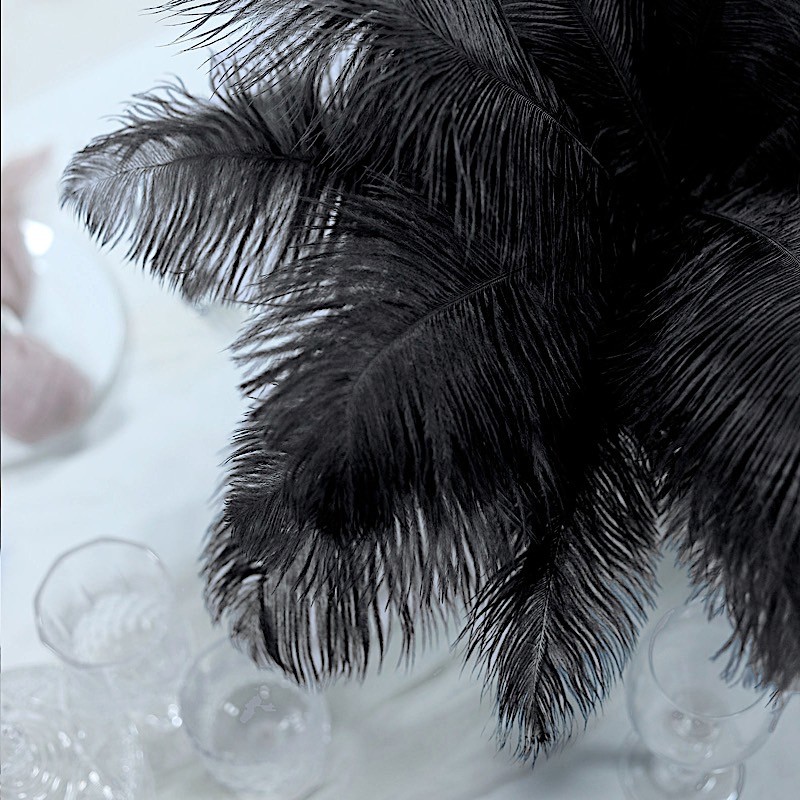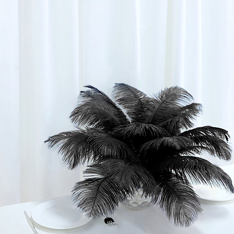 как выглядит 12 pcs 13-15" long Black Genuine Ostrich FEATHERS Wedding Party Centerpieces фото