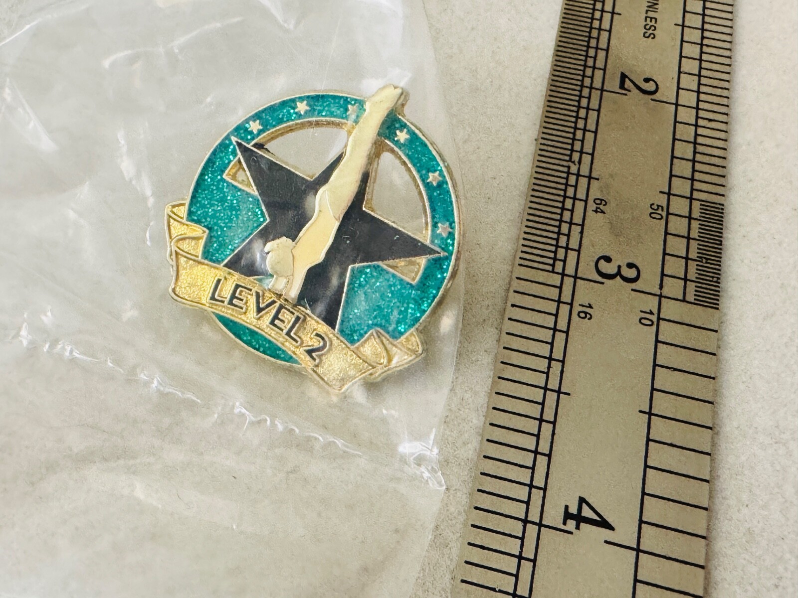как выглядит NEW Crown GLITTER Gymnastics Lapel Pin LEVEL 2 Green фото
