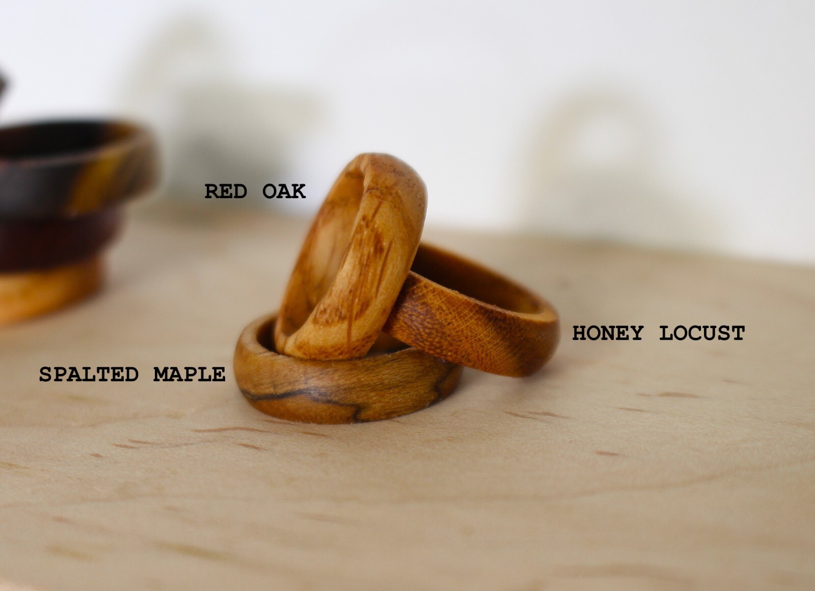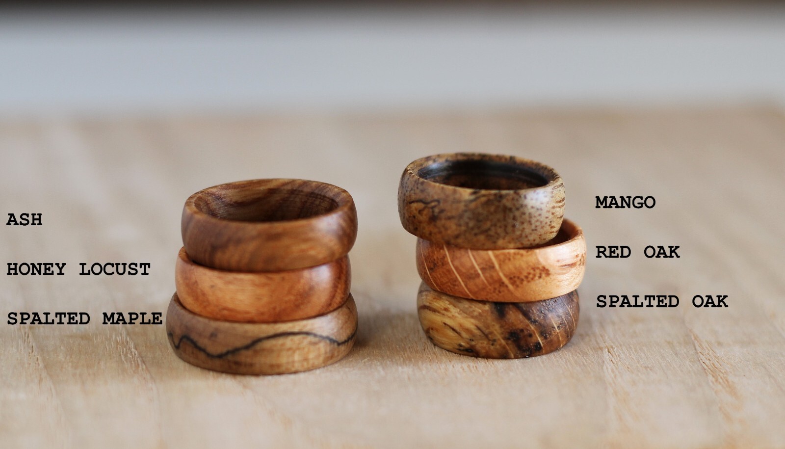 Rings Made from Wood, Choose Size Wood Ash, Chakte, Oak, Pink Ivory, Walnut