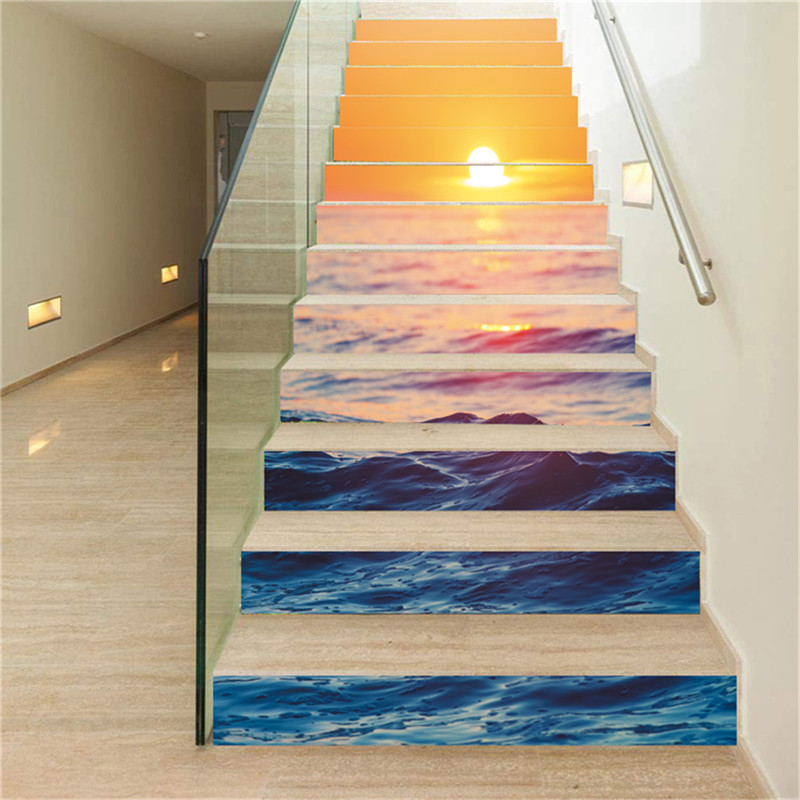 3D Sunset Seascape Self-Adhesive Stair Riser Sticker for Home 39.37x7.09