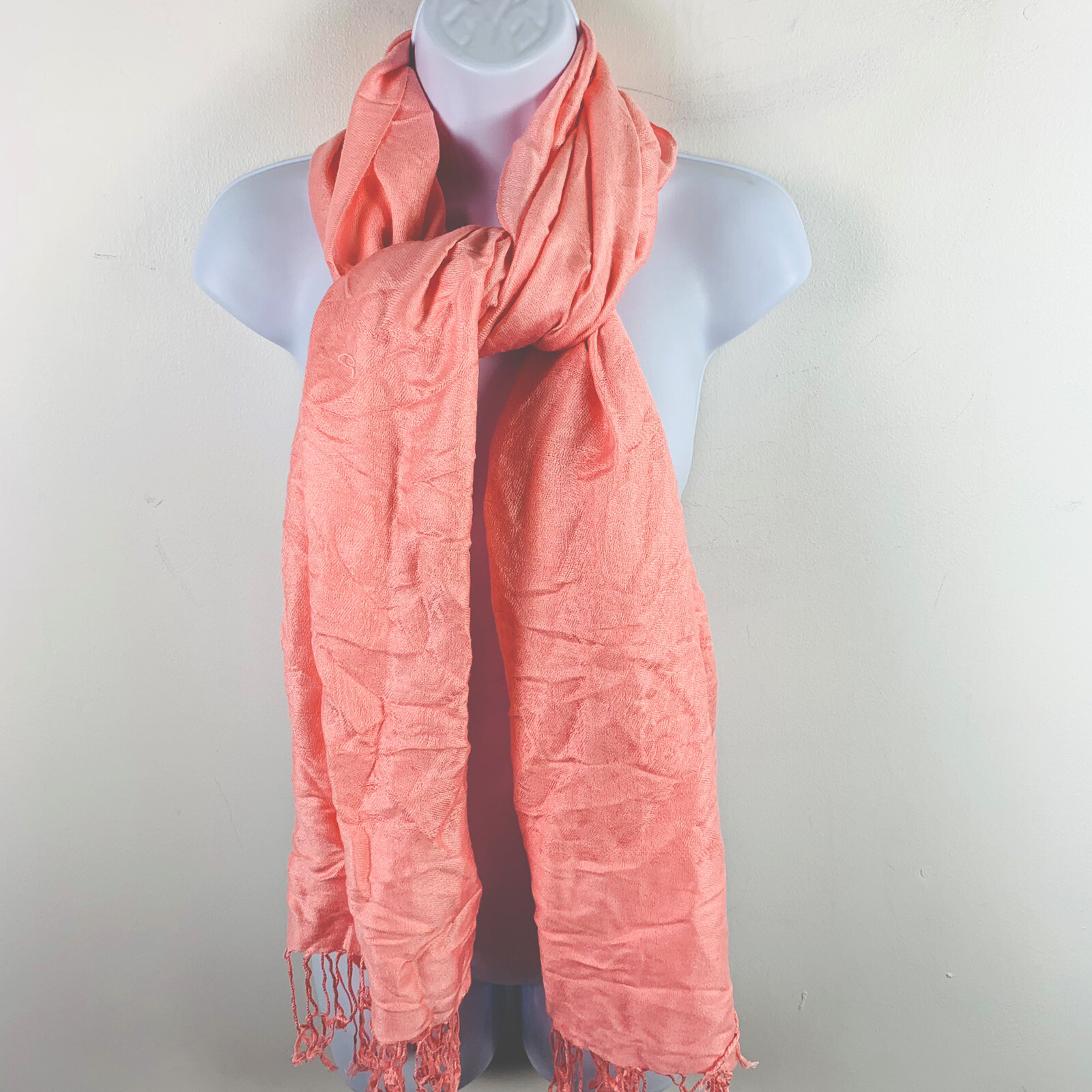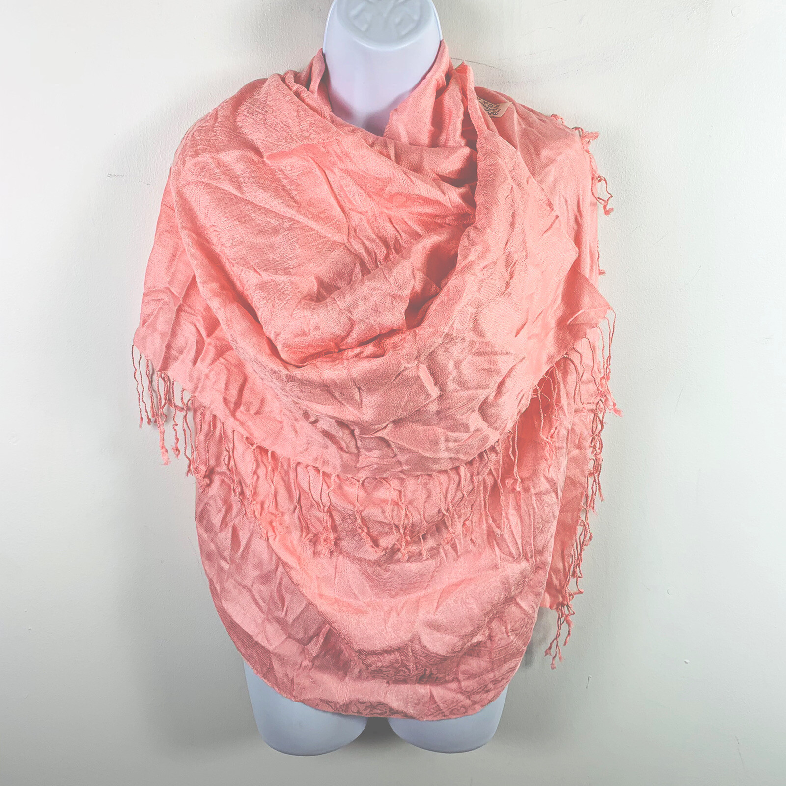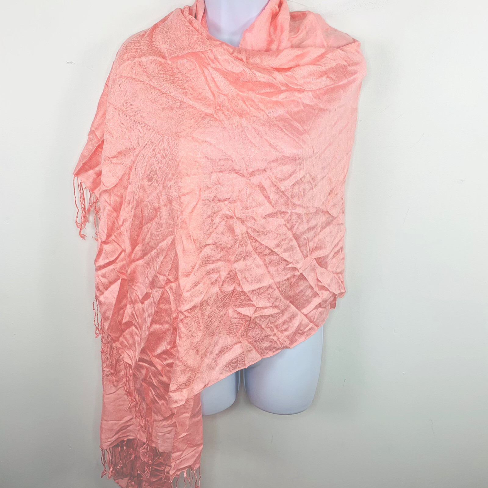 Womens Rectangle Scarf Wrap Pink Paisley Print Tassled Pashmina Silk VINTAGE