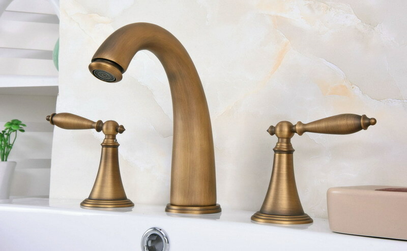 как выглядит Antique Brass Widespread Bathroom Basin Faucet Sink 3 Holes Mixer Tap san081 фото