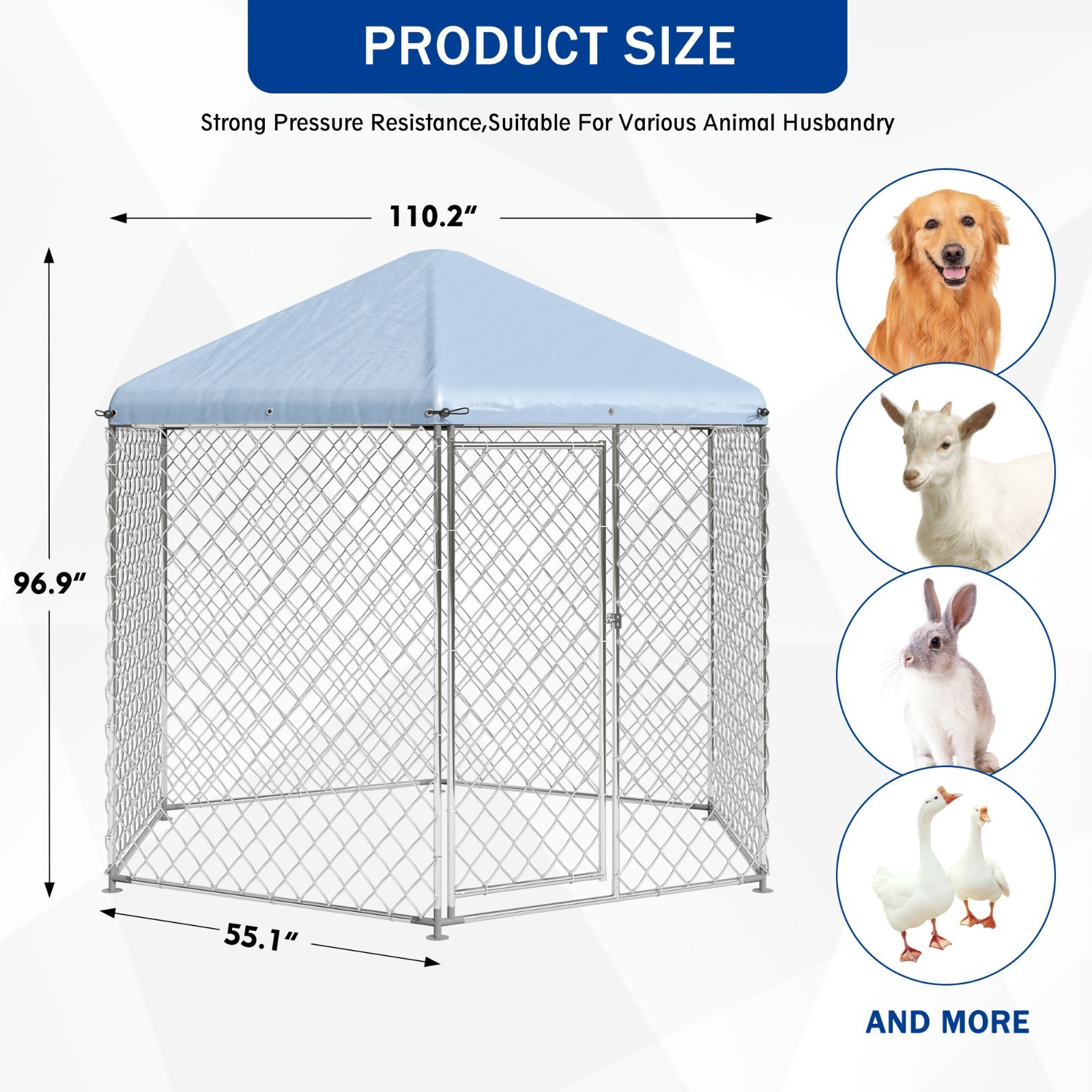 Heavy Duty Large Dog Kennel Outside with Roof Outdoor Dog Kennel with Metal Gate