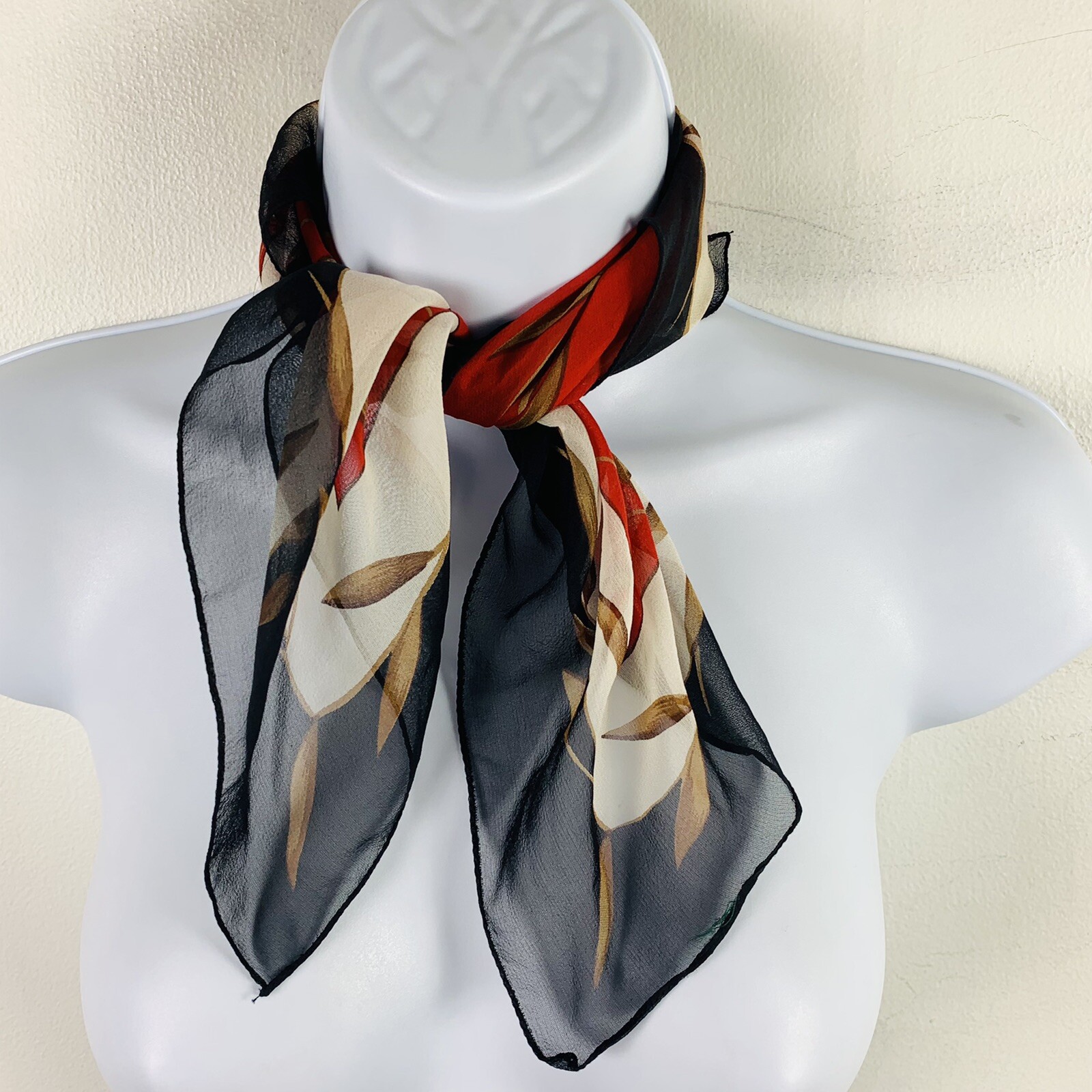 Harve Benard Womens Square Scarf Red Black Brown Vines Lightweight VINTAGE