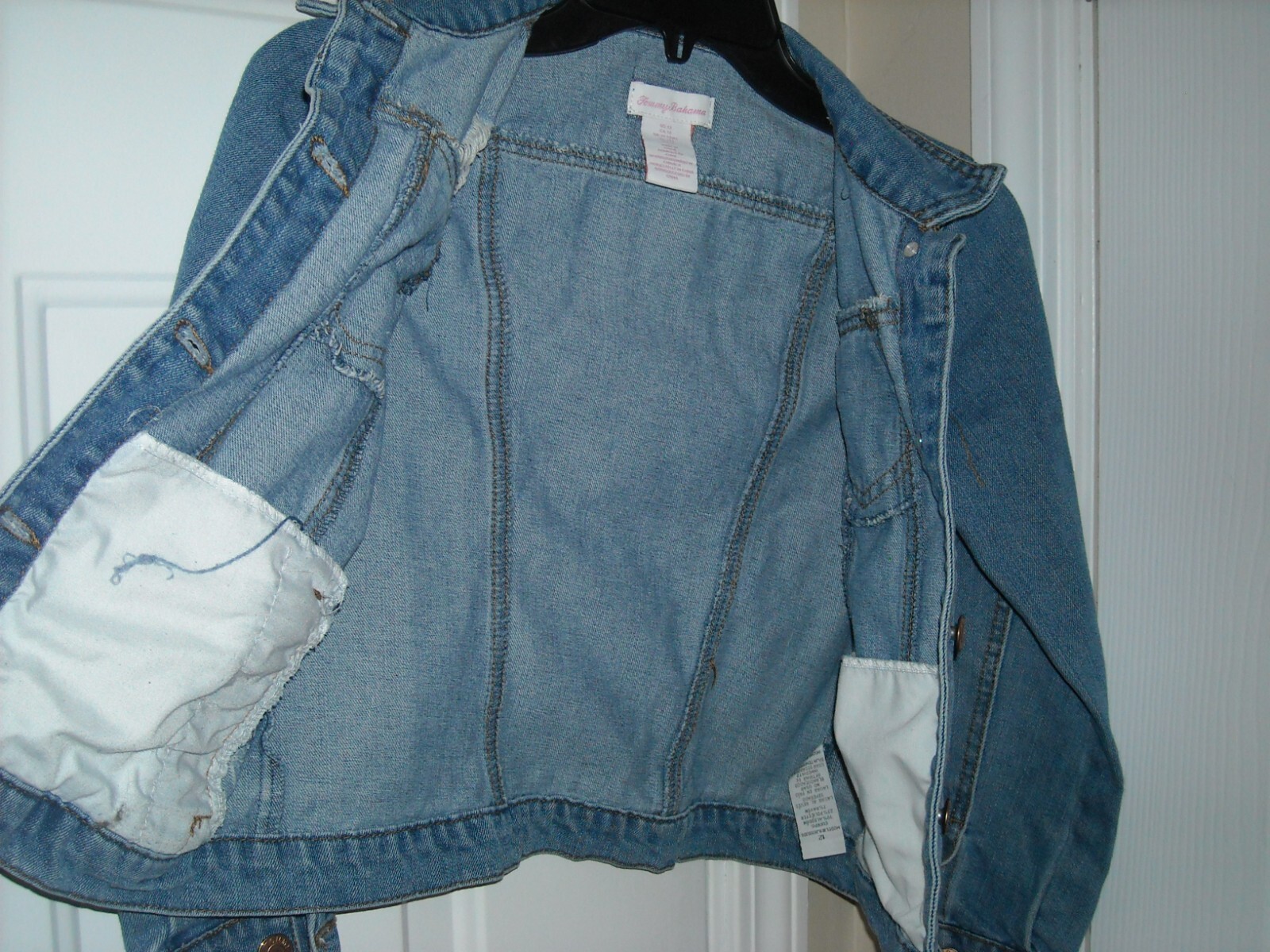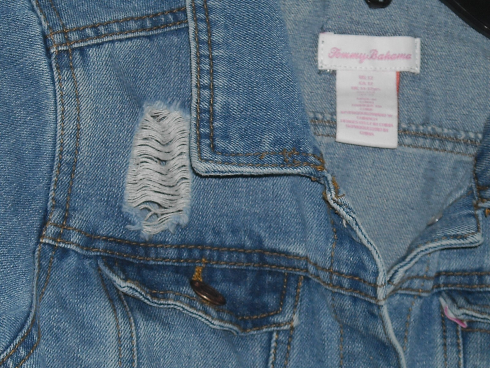 как выглядит Tommy Bahama, Distressed Denim Jean Jacket, Childs size 12, Good Condition фото