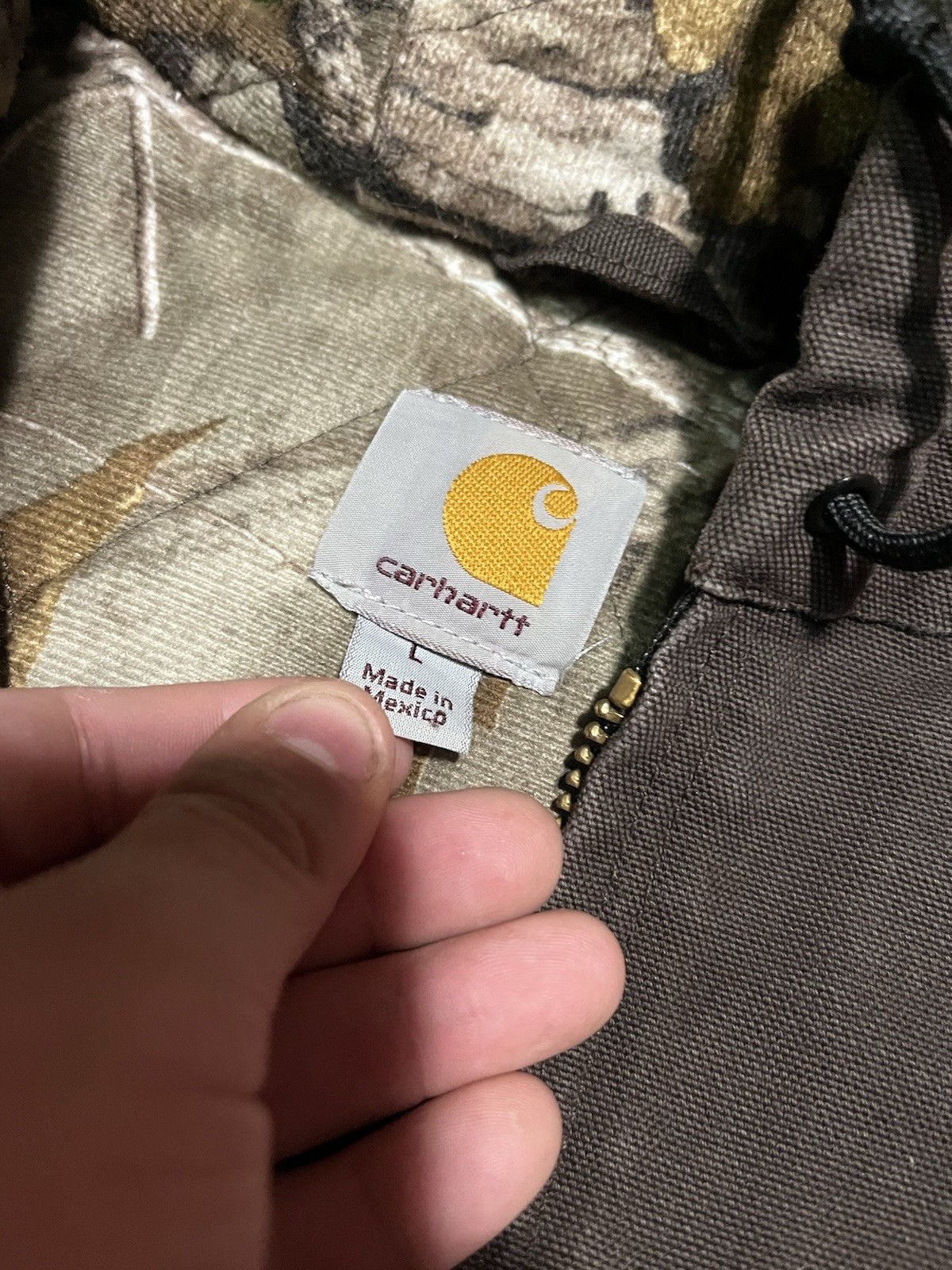как выглядит VTG Carhartt 101074 201 Realtree Camo Lined Brown J130 Hooded Work Jacket Size L фото