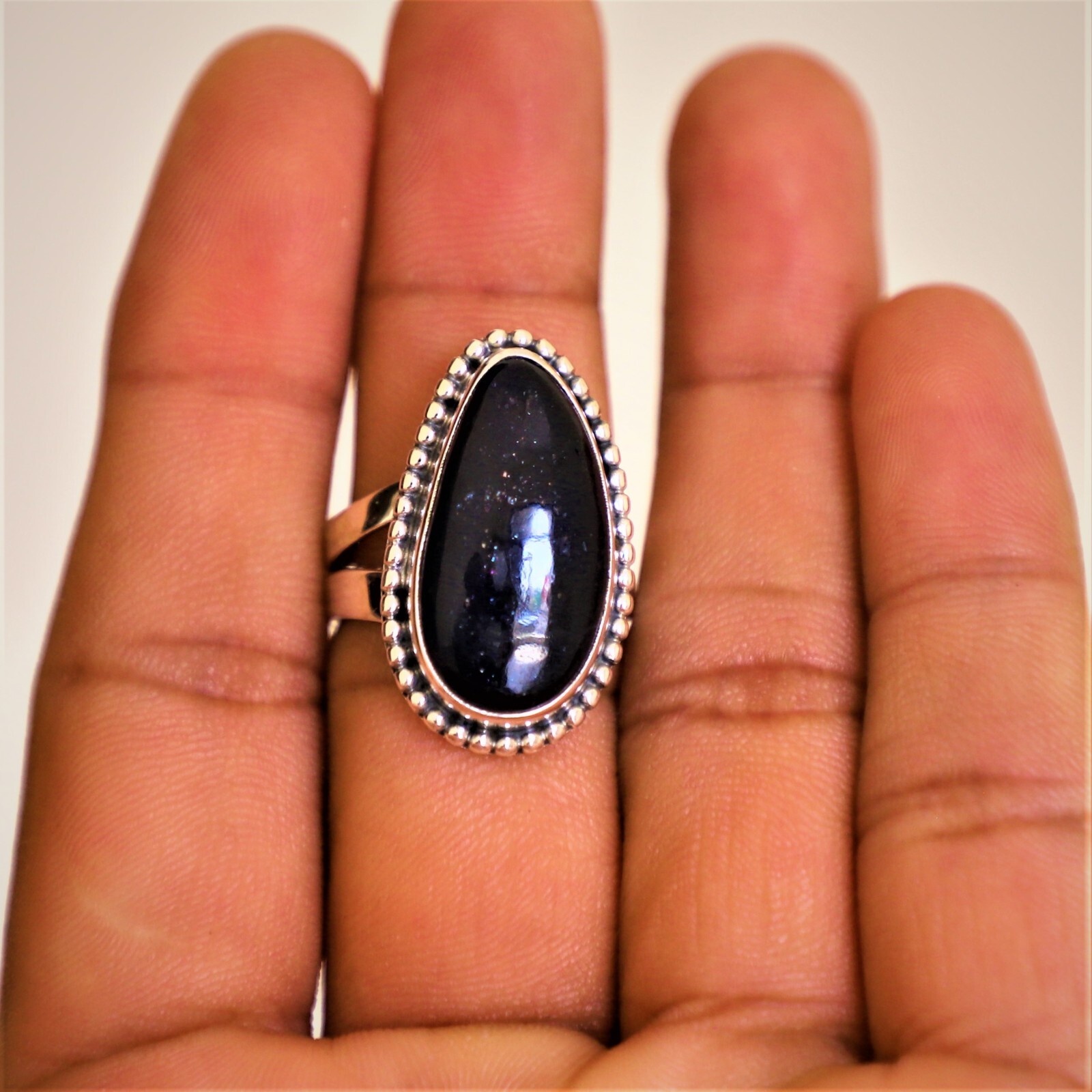 как выглядит IOLITE SUNSTONE NATURAL GEMSTONE 925 SOLID STERLING SILVER JEWELRY RING 3 TO 12 фото