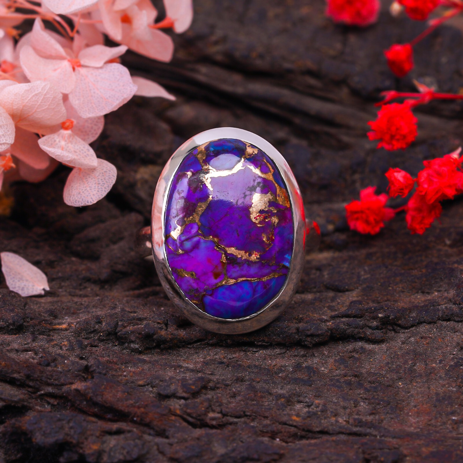 Purple Copper Turquoise Ring 925 Sterling Silver Boho Rings Gift Jewelry Women