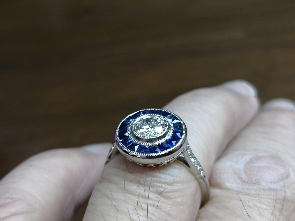 как выглядит 1Ct White Round Cut Bezel Set Art Deco Engagement Wedding Ring Solid 925 Silver фото