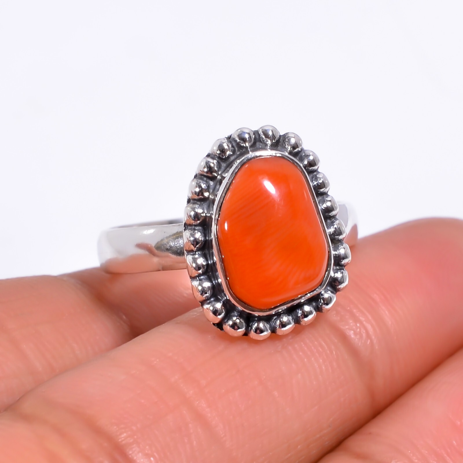 Red Coral Stone Ring 925 Sterling Silver Boho Rings Christmas Gift for Her