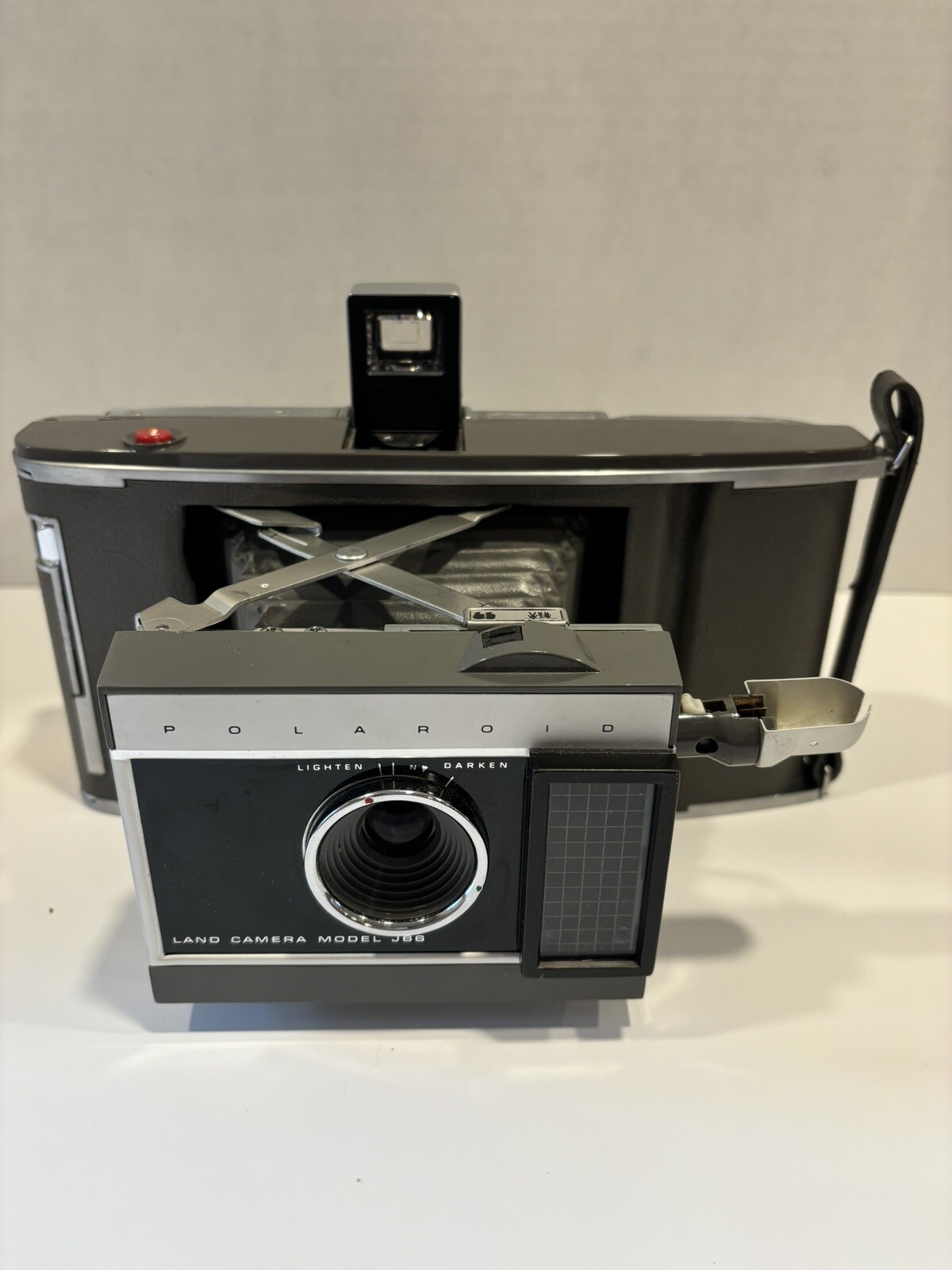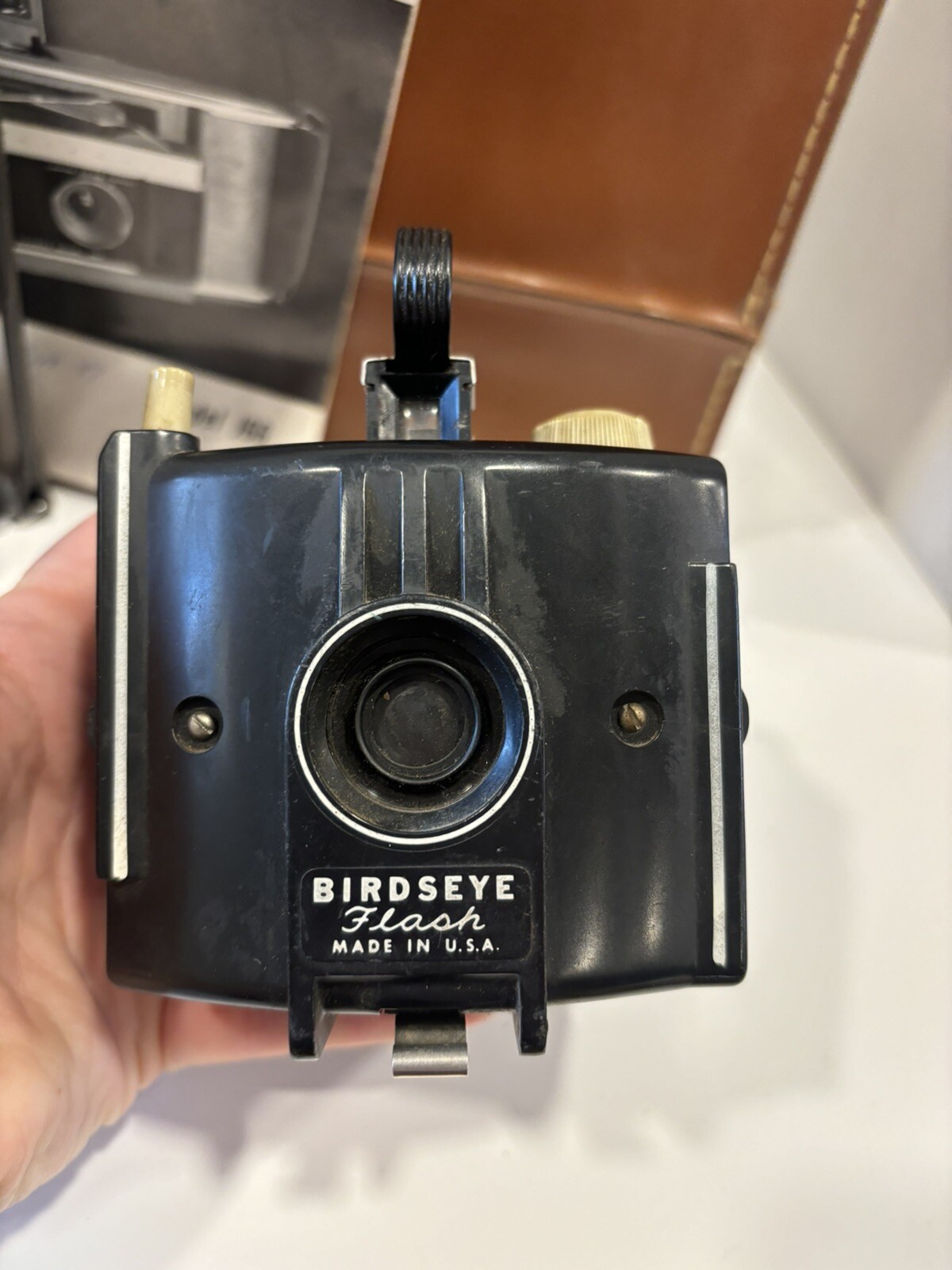 как выглядит Vintage Polaroid Electric Eye Land Camera Model J66 W/Birdseye Flash Case Manual фото