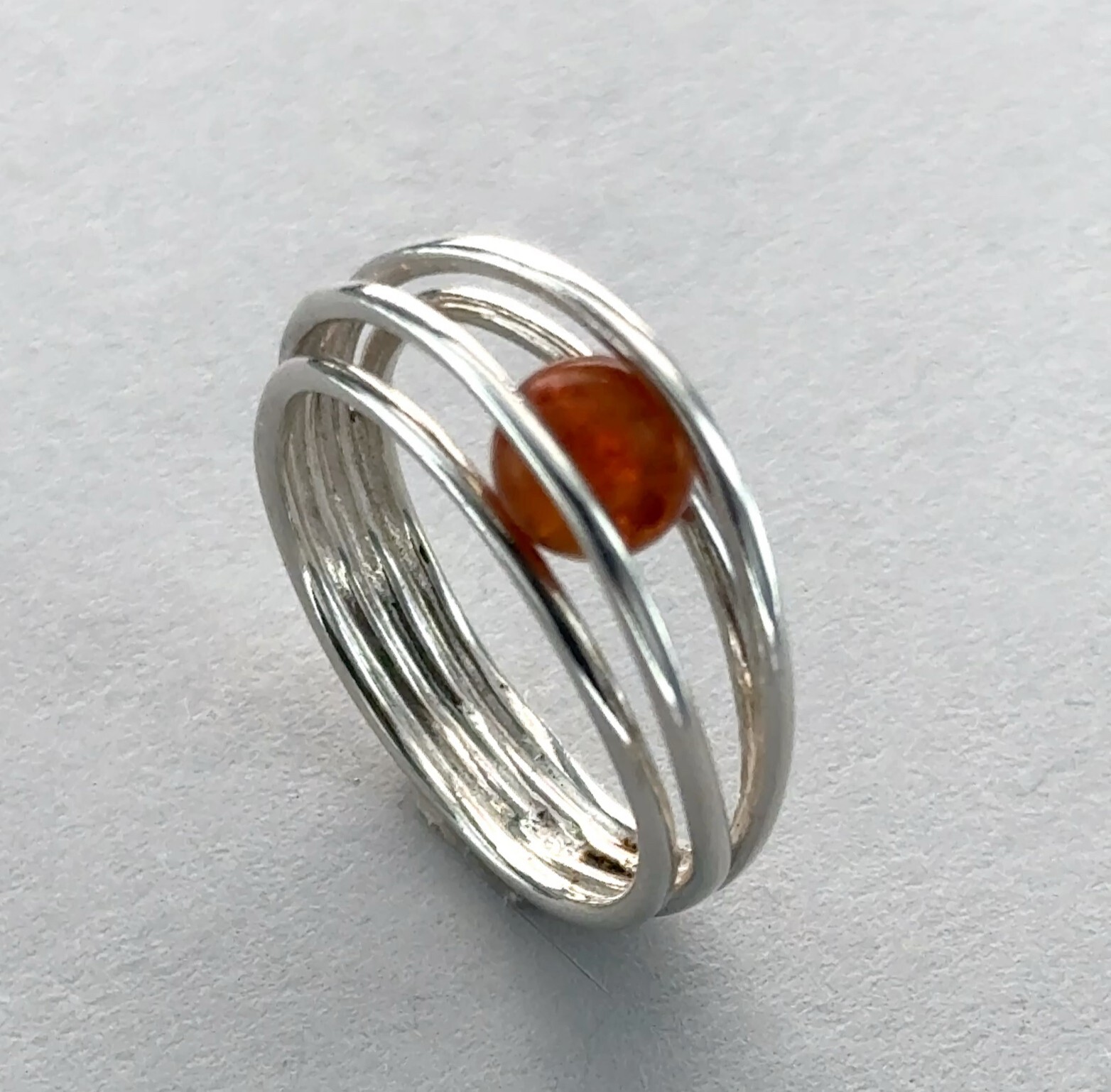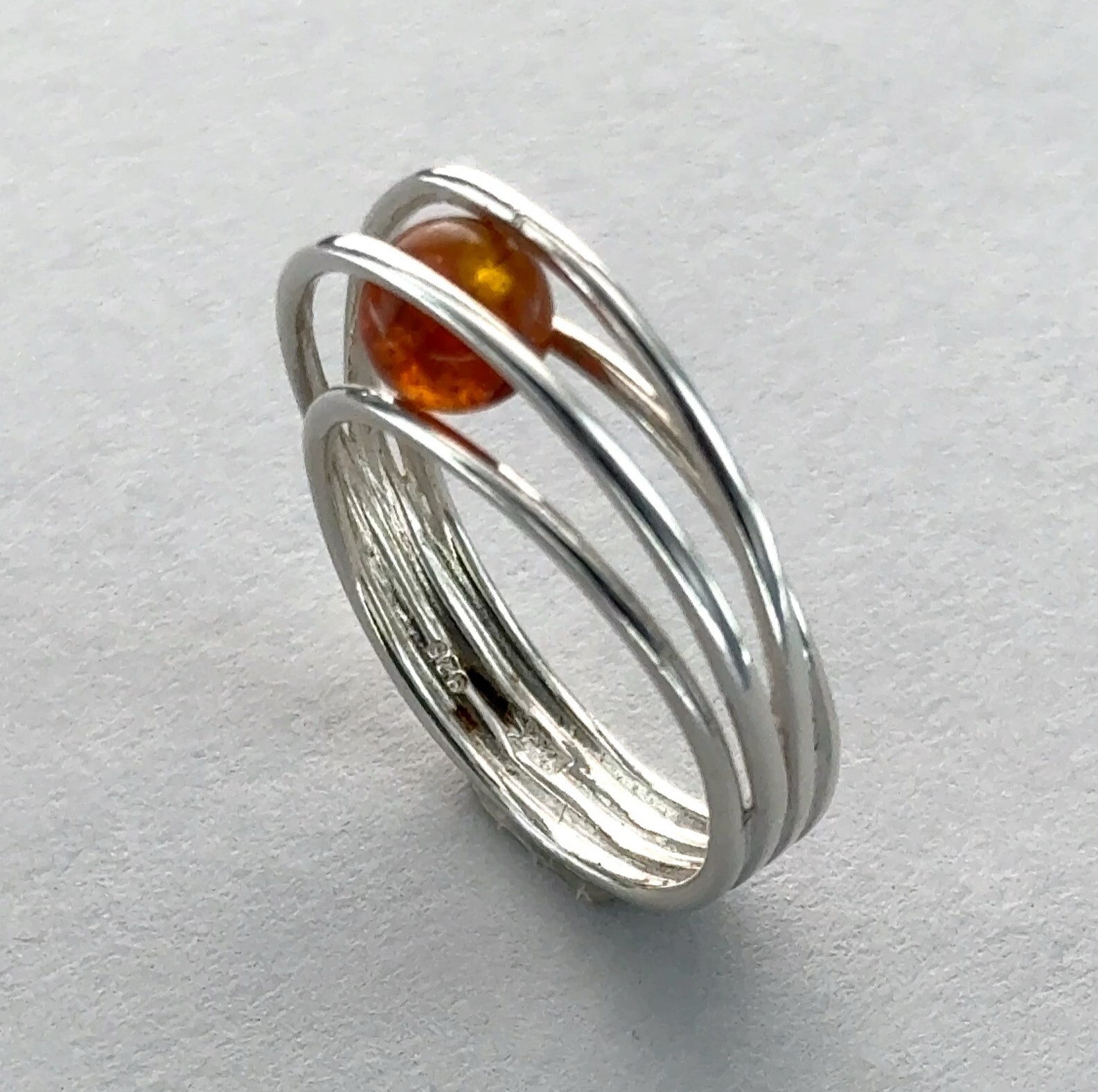 как выглядит Round Ball Cognac / Brown BALTIC AMBER Ring - 925 STERLING SILVER Poland 15e фото
