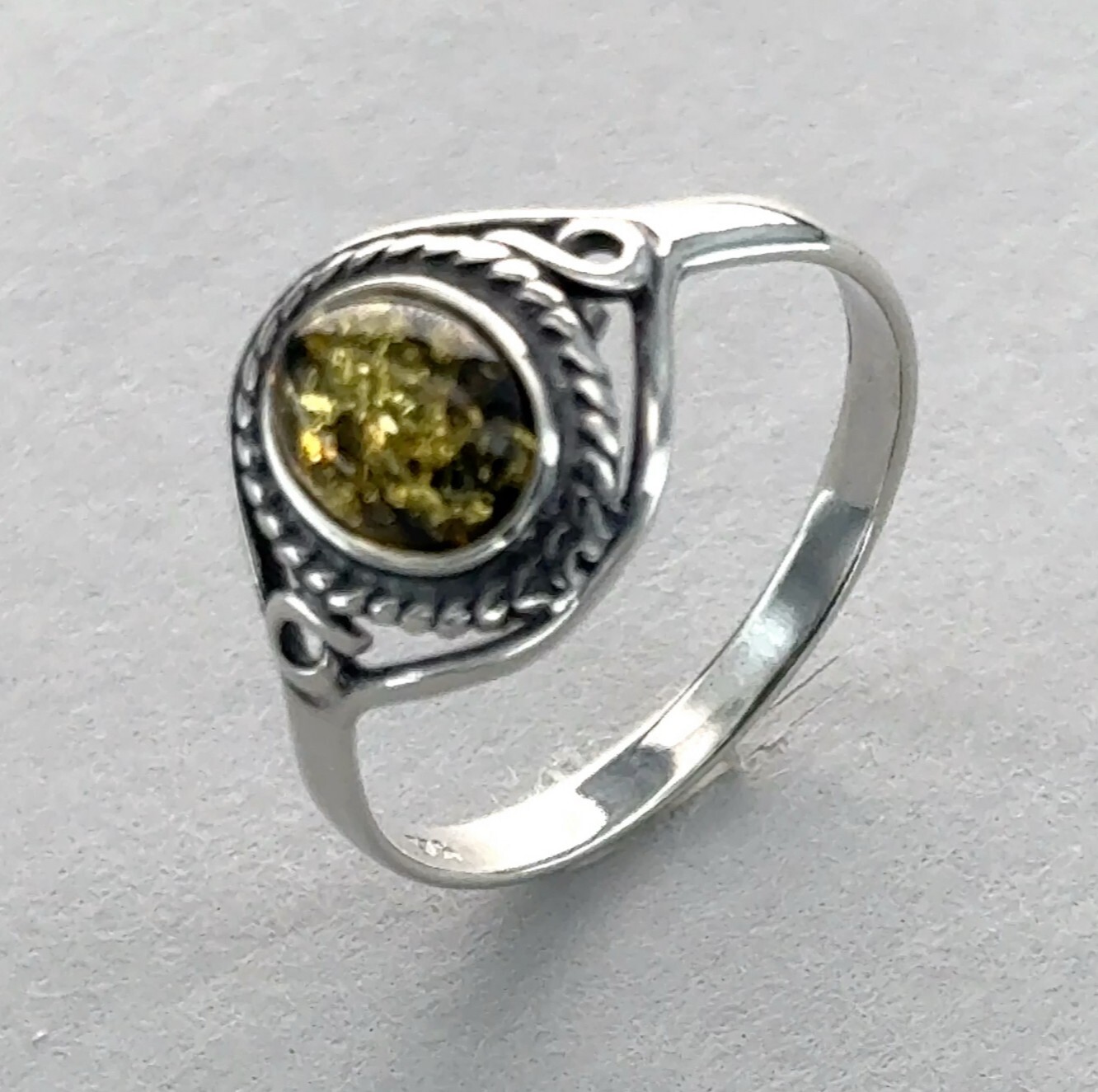 как выглядит Oval Green BALTIC AMBER "Antique Look" Ring 925 STERLING SILVER Poland 20e фото