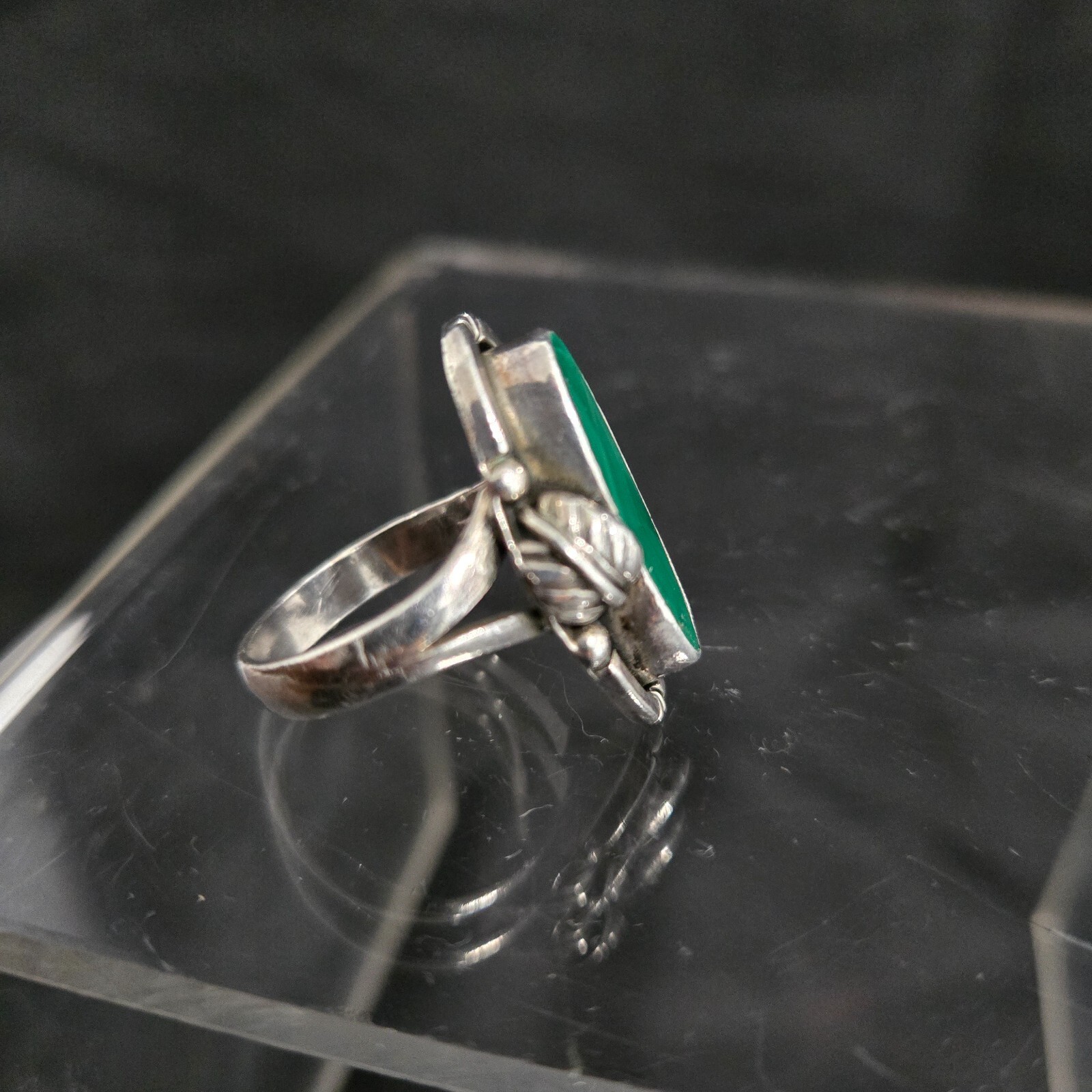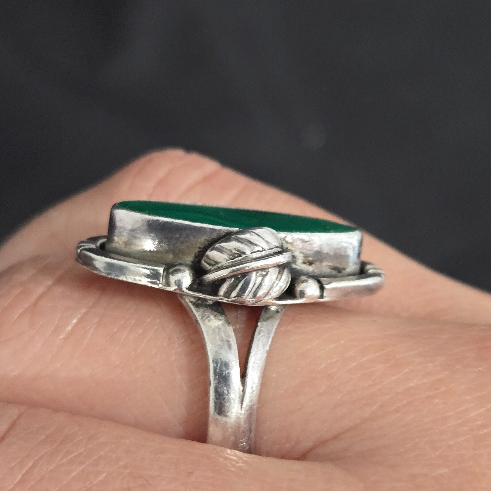 как выглядит Mexico Sterling Silver Ring Oval Bezel Set Malachite Stone Size 9.5 фото