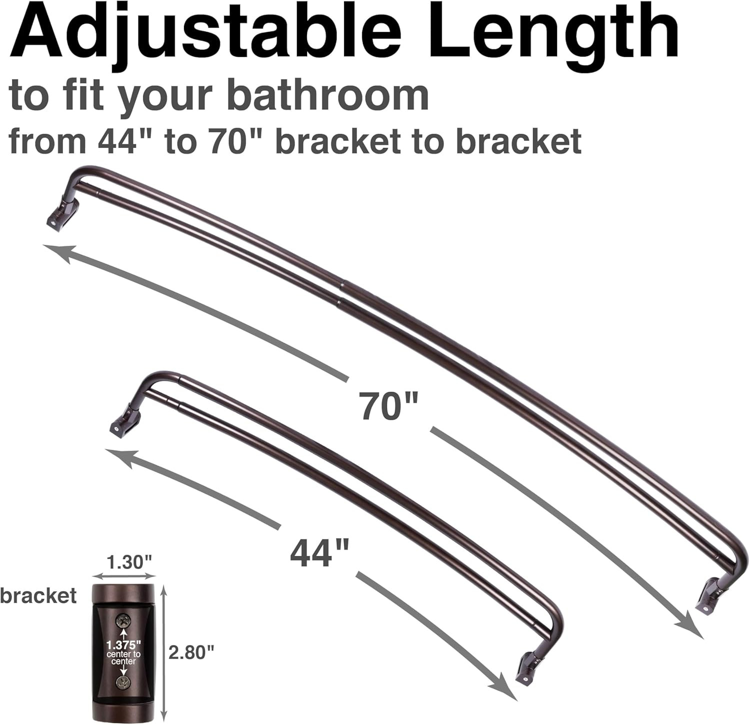 Double Curved Shower Rod, Metal Construction, Adjustable between 44 to 70 Inches
