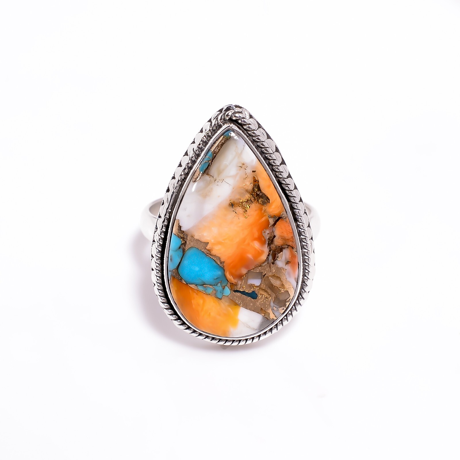 Orange Oyster Turquoise Ring 925 Sterling Silver Handmade Boho Ring Gift Jewelry