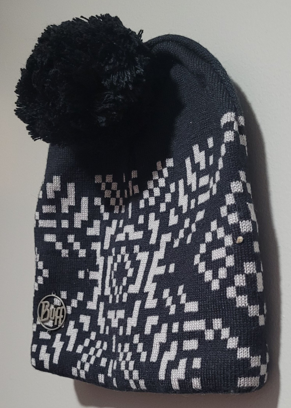 как выглядит BUFF Knitted Polar Whistler Hat Beanie Black Snowflake Pom Pom Fleece Lined фото
