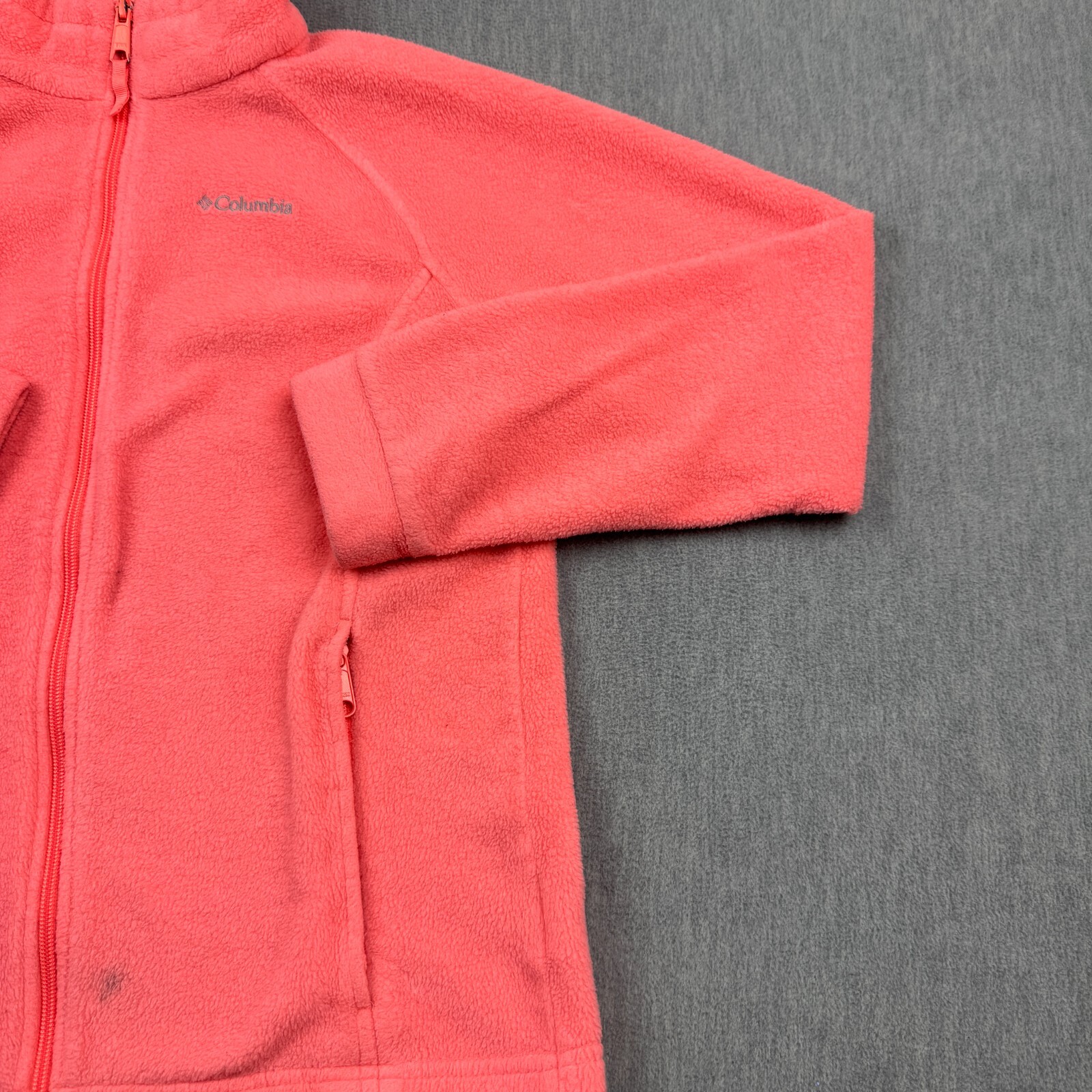 как выглядит Columbia Jacket Youth 14/16 Large Orange Peach Fleece Full Zip Mock Neck Coat фото