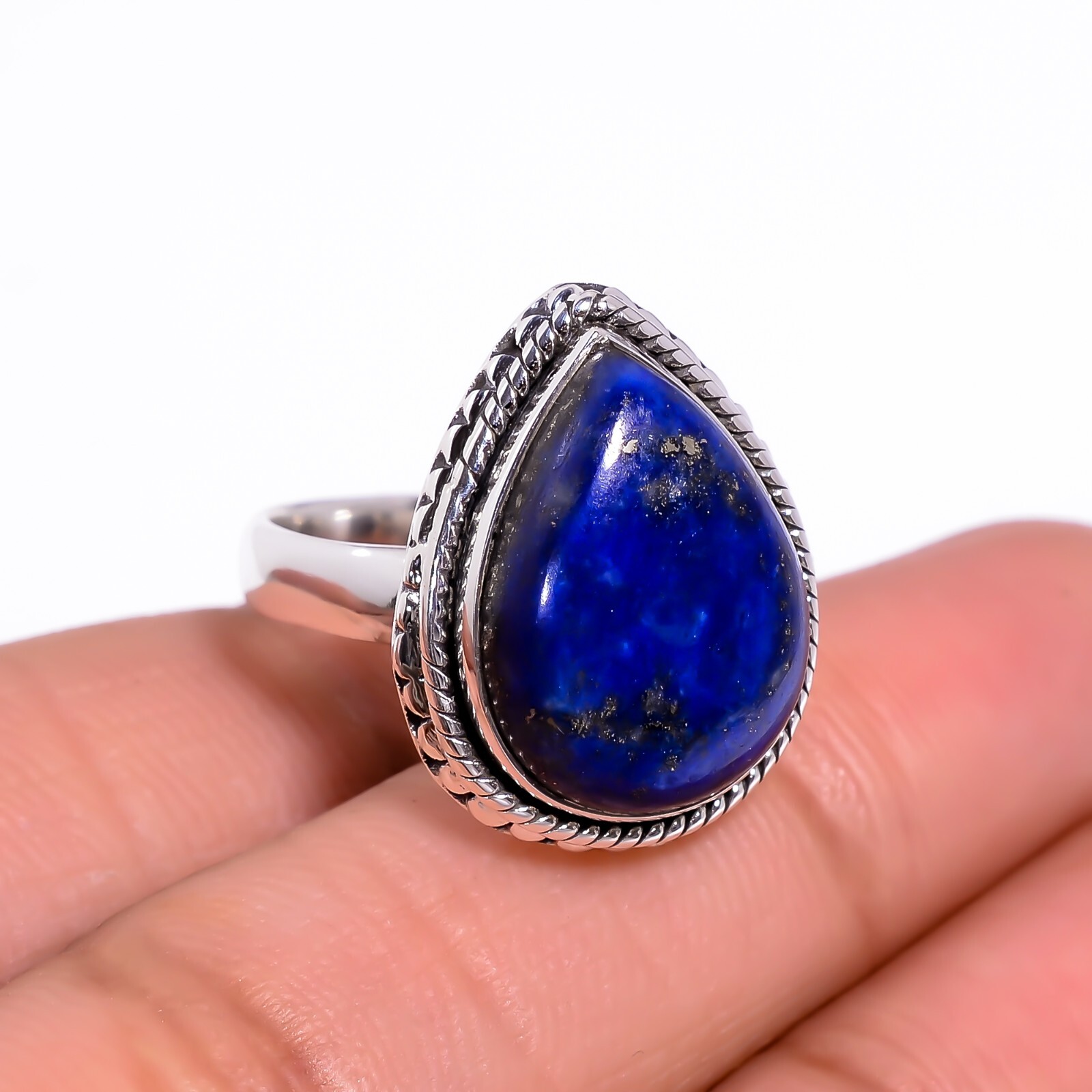 как выглядит Natural Blue Lapis Lazuli Ring 925 Sterling Silver Handmade Boho Rings Jewelry фото
