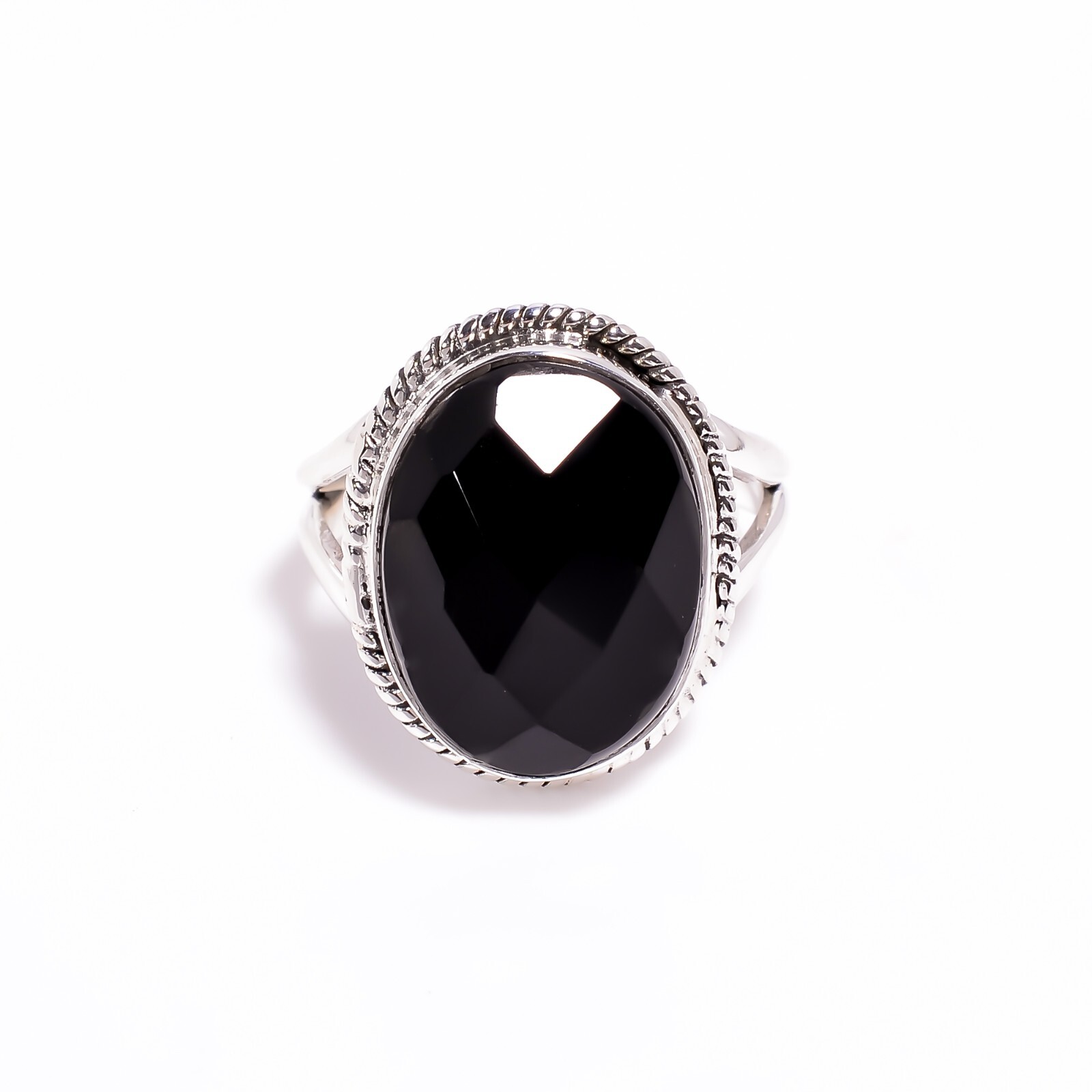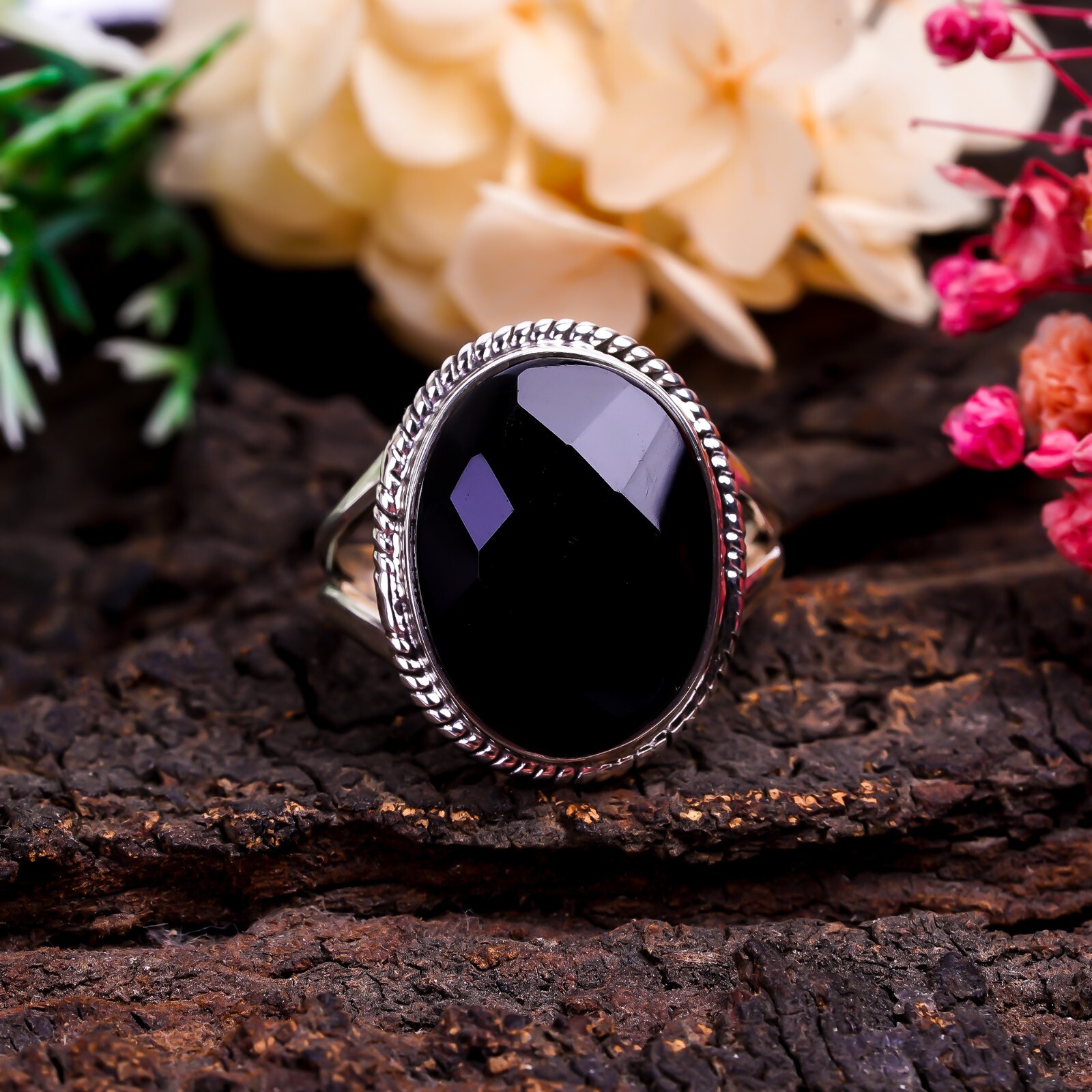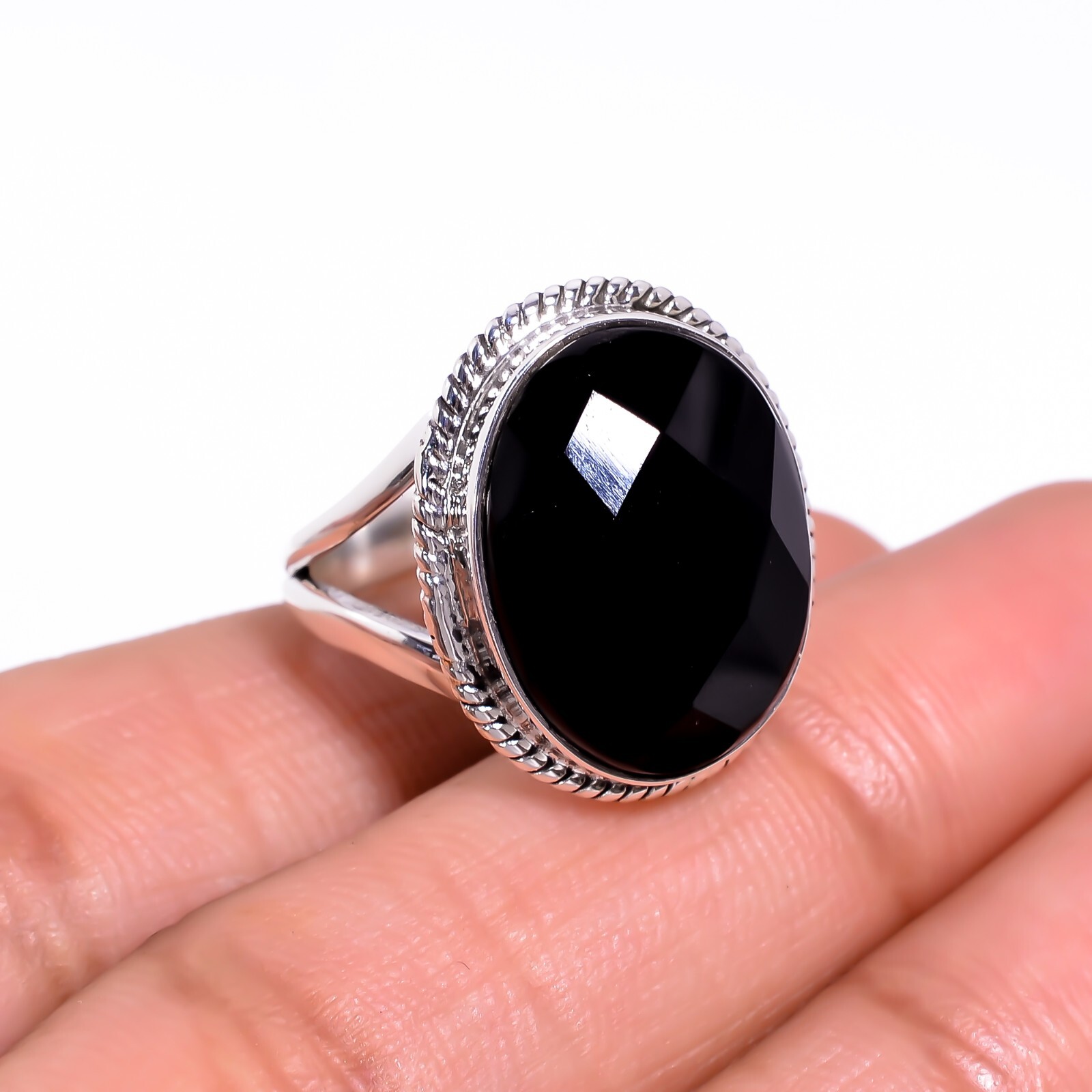 как выглядит Natural Black Onyx Oval Cut Stone Ring 925 Sterling Silver Boho Rings Jewelry фото