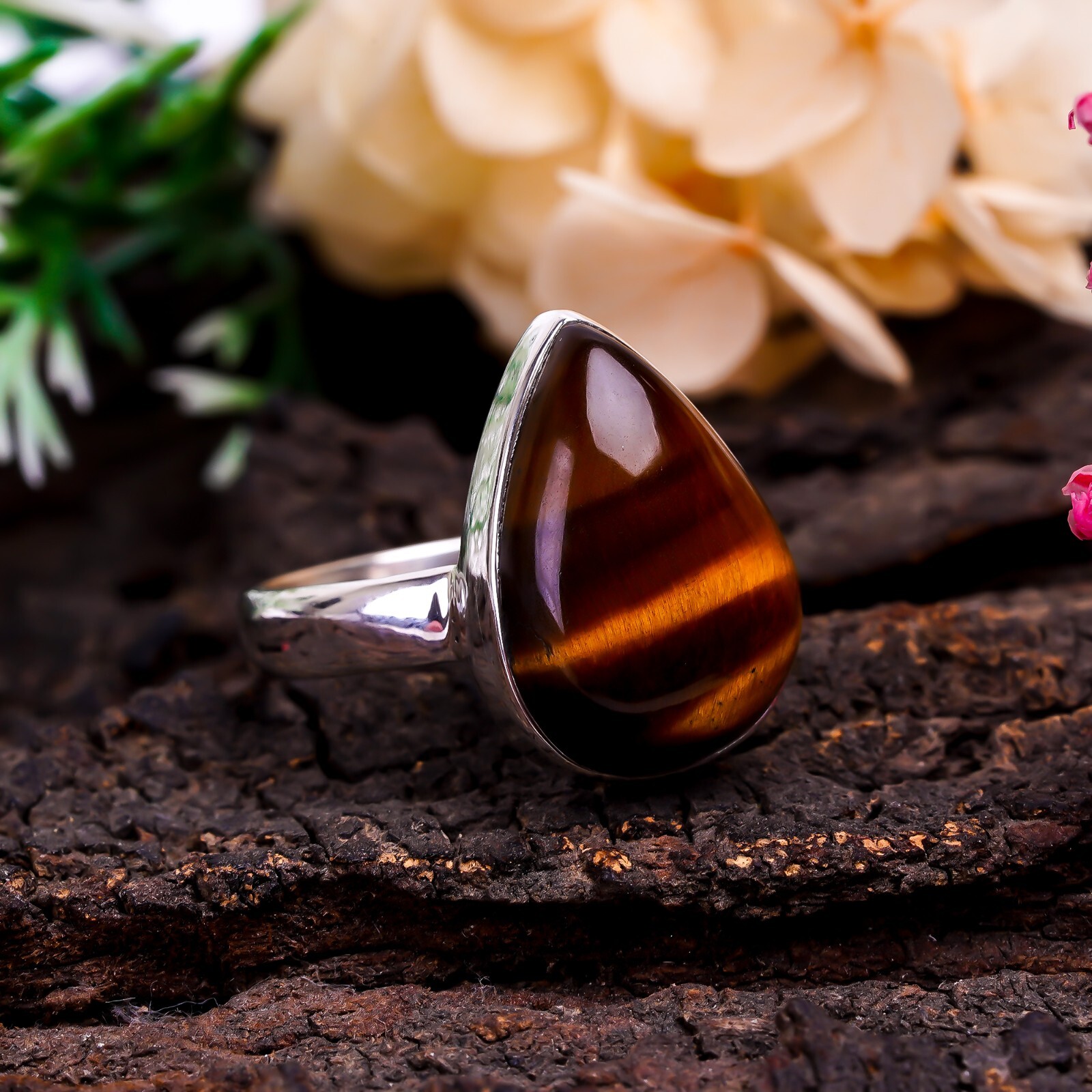 Tiger Eye Ring 925 Sterling Silver Statement Boho Rings Jewelry Gift for Her