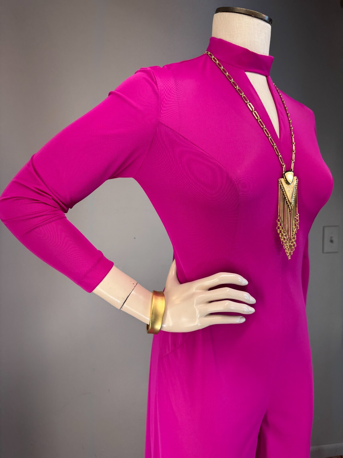 как выглядит Vtg 70s Jumpsuit Deep Hot Pink Princess Seams Wide Leg Keyhole Lounge Lingerie фото