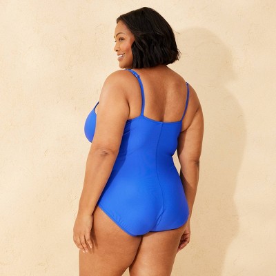 как выглядит Womens Waist Detail Surplice Full Coverage One Piece Swimsuit - Shade фото