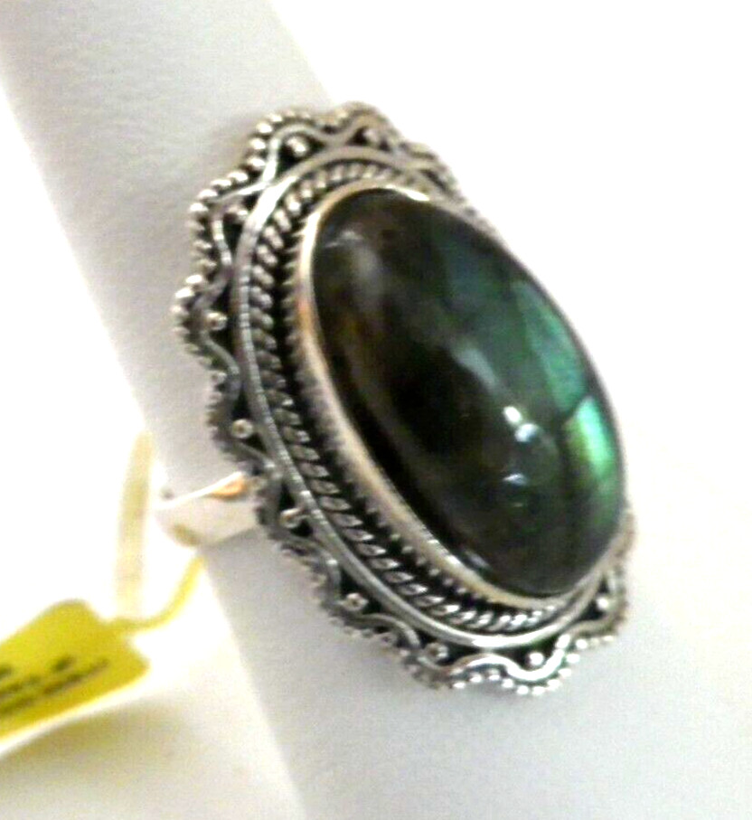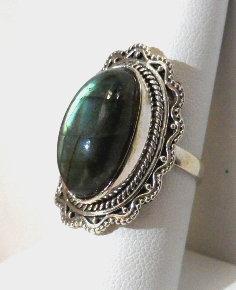 RING Artisan Crafted Labradorite Sterling Silver, Elongated, 10.81 cts Size 7