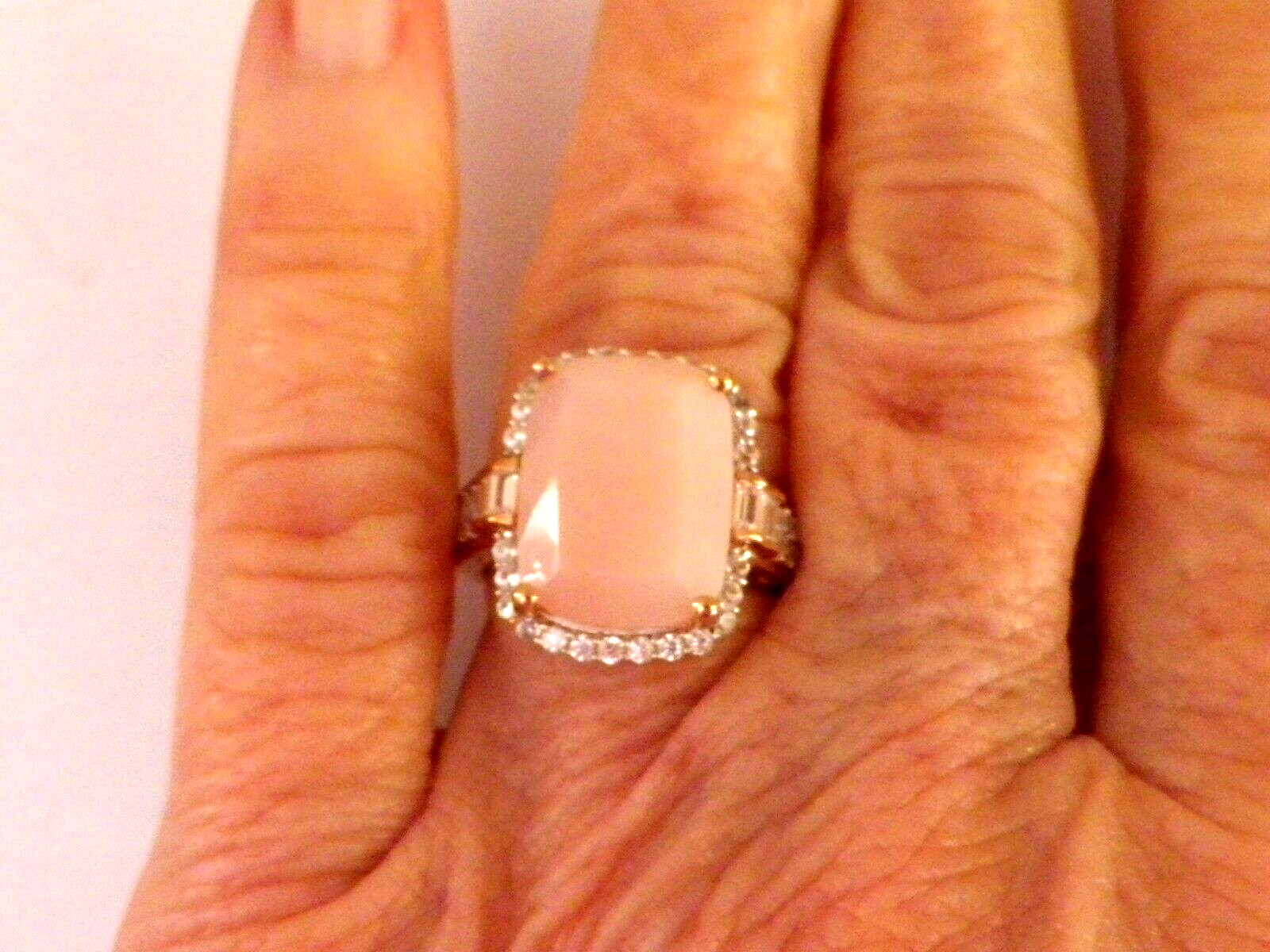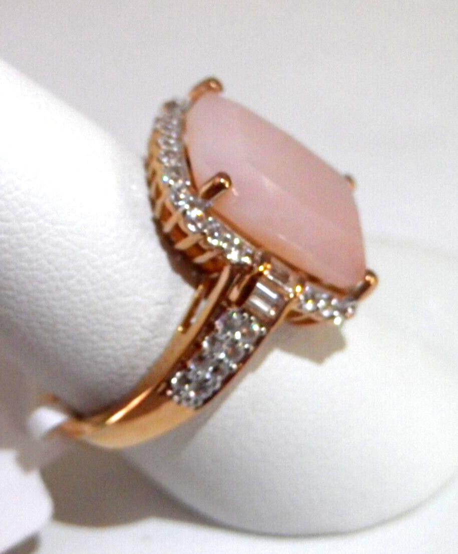 как выглядит RING Pink Peruvian Opal White Zircon Sterling Silver 14K Rose Gold Overlay Sz 8 фото