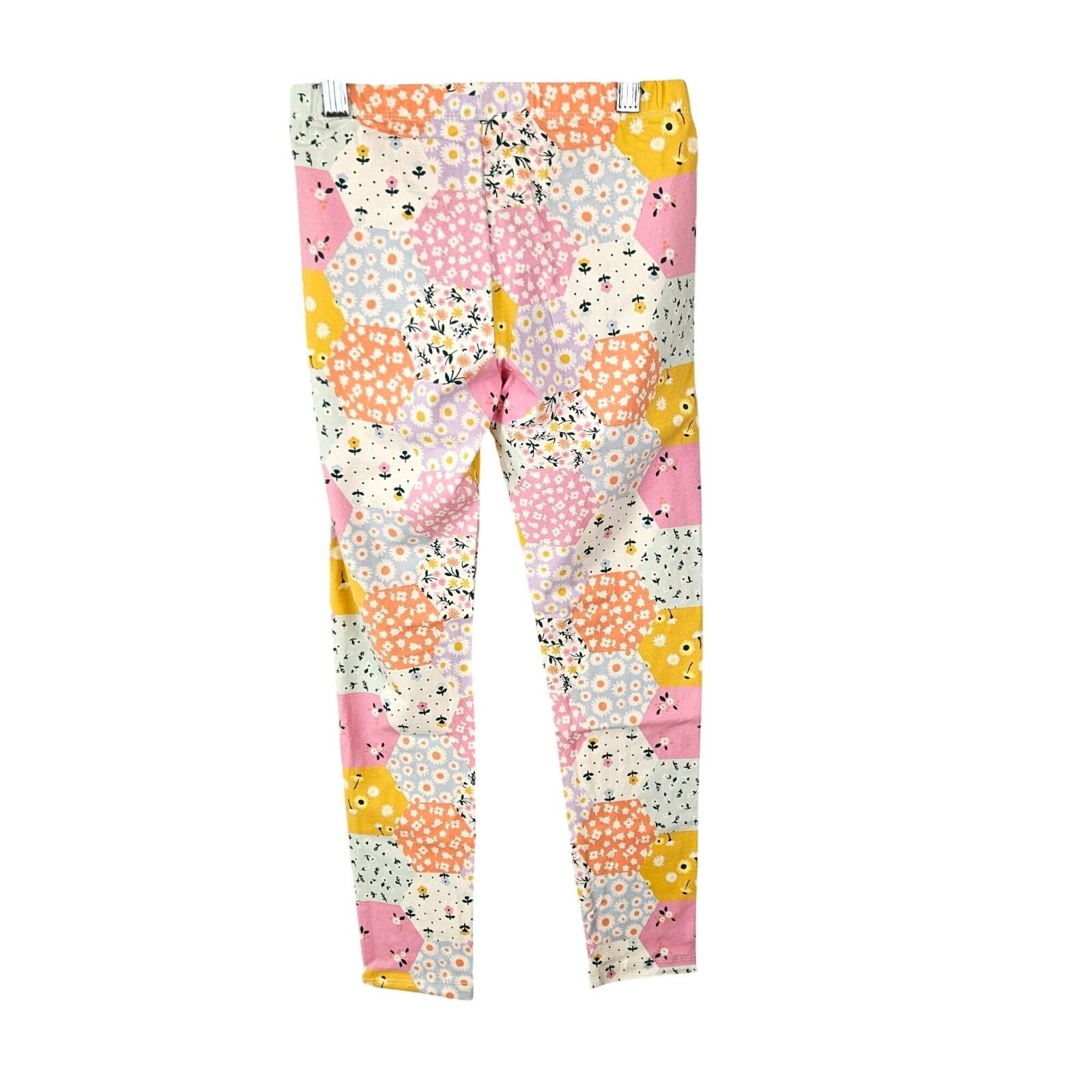 Girls Hexagon Patch Leggings Large 10/12 Durable Knee Stretch Floral Multi Color