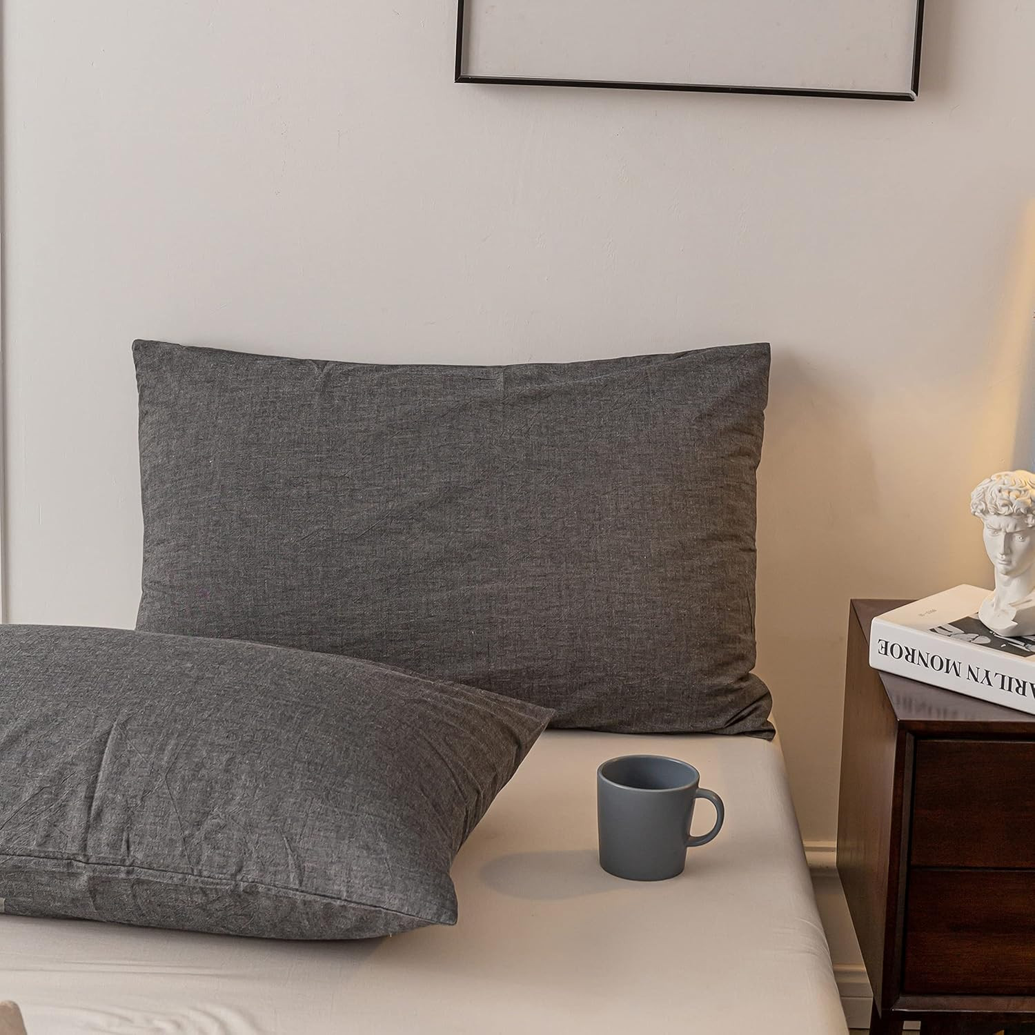 как выглядит Washed Cotton Duvet Cover Oueen Ultra Soft 100 Cotton Solid Color Gray Duvet Co фото