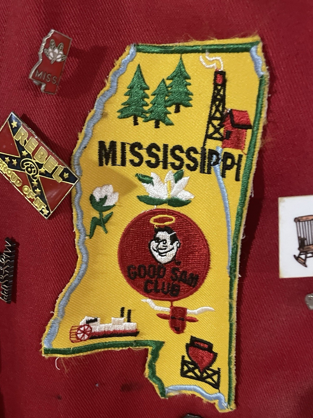Vintage Good Sams Club Red Vest Jacket with Pins Patches TUPELO MISSISSIPPI